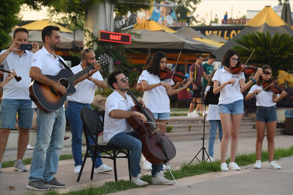 Konyaaltı Belediye Başkanı Semih Esen, “Müzik Dolu Konyaaltı” projesi kapsamında Konyaaltı Belediyesi Oda Orkestrası’nın Konyaaltı’nın farklı noktalarında müzik etkinliği yapacağını söyledi. Başkan Esen, “Oda Orkestramız ilk çalışmasını Kent Meydanı’nda gerçekleştirdi. Flash mob etkinliği vatandaşlarımızın ilgisini çekti. Orkestramız zaman zaman böyle etkinlikler yapacak. Konyaaltı’nın hareketli noktalarında kimsenin beklemediği zamanlarda müzisyenlerimiz karşınıza çıkabilir. Müzik Dolu Konyaaltı projemiz büyüyerek devam edecek” dedi.