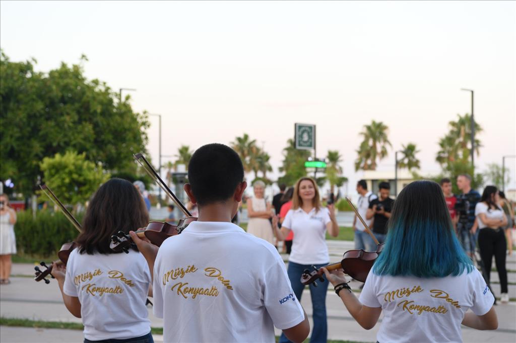 Konyaaltı Belediyesi Sanat Eğitim Merkezi (KONSEM) bünyesinde eğitim gören kursiyerlerden oluşan Konyaaltı Belediyesi Oda Orkestrası, ilk etkinliğini Konyaaltı Kent Meydanı’nda gerçekleştirdi. Kent Meydanı’nda kafelerde oturan insanların arasından gelerek, enstrümanlarıyla bir noktada buluşan, orkestra üyeleri birden müzik yapmaya başladı. Çevrede oturan vatandaşlar şaşkınlıkla müzisyenleri izledi. Ellerinde telefonla çekim yapan vatandaşlar, zaman zaman orkestraya eşlik etti. Konyaaltı Belediyesi Oda Orkestrası’nın flash mob etkinliği izleyenlerden büyük alkış aldı.
