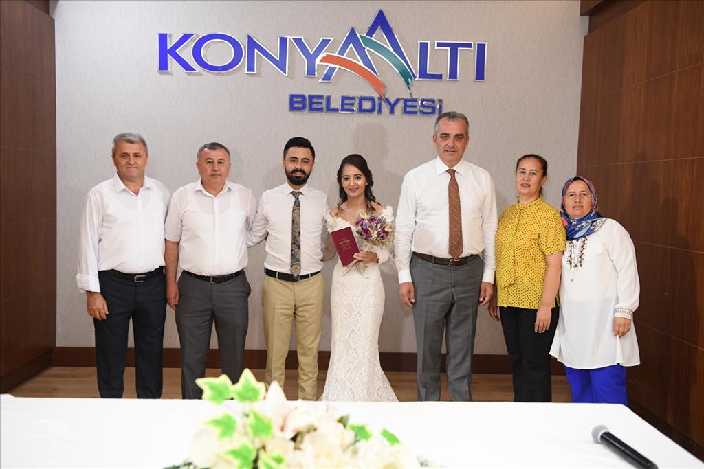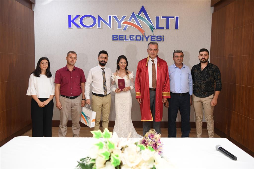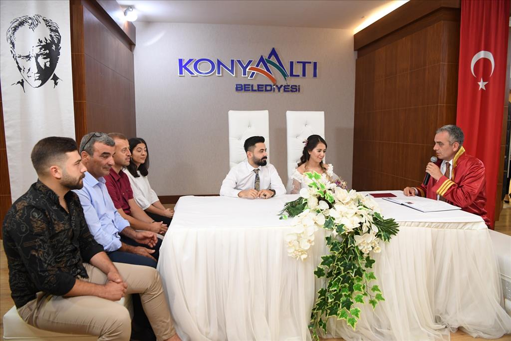 Yılın en özel tarihi kabul edilen 09.09.2019 günü mutluluğa "evet" demek isteyen 14 çift, nikahlarını Konyaaltı Belediyesi Nikah Salonunda kıydırdı. Evlilik tarihini unutulmaz kılmak isteyen çiftlerden bazılarının nikahını Konyaaltı Belediye Başkanı Semih Esen kıydı. Konyaaltı Muhtarlar Derneği Başkanı Faruk Kıldıran’ın oğlu Mehmet Mustafa Kıldıran ve Sedef Yağlı çiftinin nikah akitlerini gerçekleştiren Başkan Esen, çiftleri tebrik ederken günün anısına fincan takımı hediye etti.