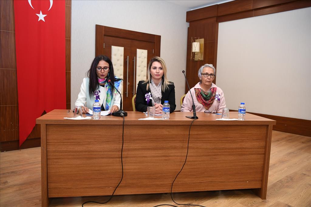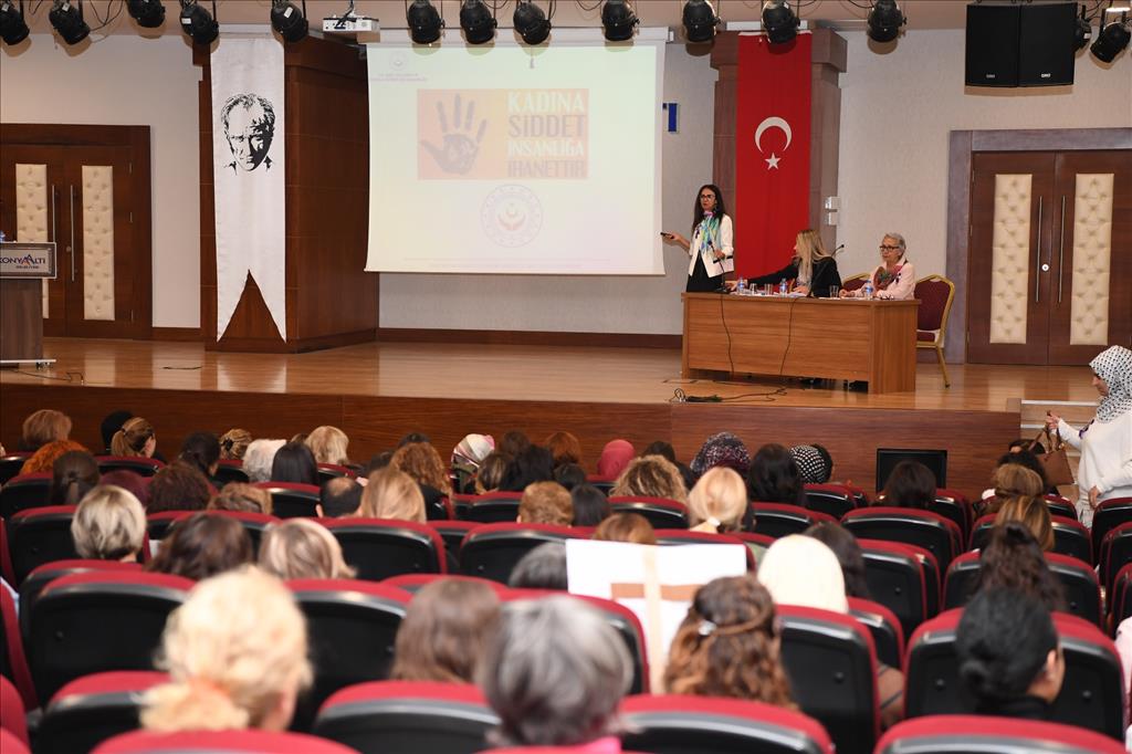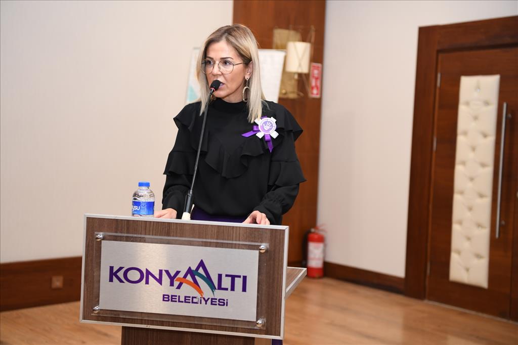 Daha sonra ise Konyaaltı Belediyesi Feslikan Salonu’nda düzenlenen programda “Kadına Yönelik Şiddetin Toplumsal Hukuksal ve Ailevi Boyutu” konusunda bir panel düzenlendi. Panelin açılışında konuşan Konyaaltı Belediyesi Başkan Yardımcısı Tuğba Erke Bostan, dünya genelinde 25 Kasım’da kadına yönelik şiddetle mücadeleye dikkat çekildiğini belirtti. Tuğba Erke Bostan, “Erkeklerin şiddetle mücadele günü yok. Biz kadınlar olarak şiddetle mücadele gününü etkinlik sayılarını arttırarak anmak, bu etkinlikleri arttırmak bu farkındalıkları çoğaltmak zorundayız. Özellikle erkeklerin gözünde ki kadınların farkındalığının yükseltilmesine inanıyoruz” dedi.