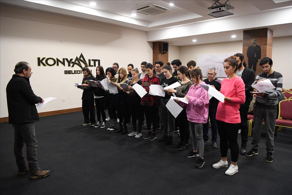 Geçtiğimiz günlerde yapılan ön elemeyi başarıyla geçen öğrenciler, Konyaaltı Belediyesi Tiyatro Akademisinde ders başı yaptı. Genel Sanat Yönetmeni Haluk Cömert’in gözetiminde tiyatro oyuncuları Özlem Gür Dokuyucu ve Dicle Alkan’ın yardımcılığında başlayan ilk derste öğrenciler ses çalışması yaptı.