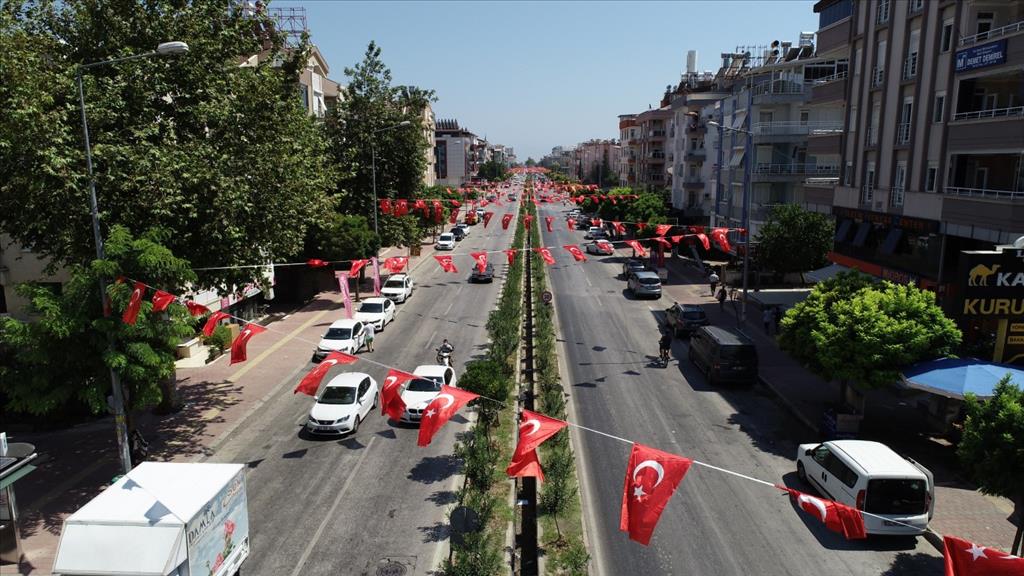 Konyaaltı Belediye Başkanı Semih Esen, “30 Ağustos Zafer Bayramı sevincimizi cadde ve sokakları al bayrağımızla süsleyerek yaşıyoruz. Konyaaltı’nda ana cadde ve bulvarlar üzerinde yaptığımız süsleme çalışmaları sırasında 10 bin Türk bayrağı kullandık. Vatandaşlarımız tarafından da büyük beğeni alan bu çalışmamız ile ulusumuzun 30 Ağustos Zafer Bayramı’nı kutluyor, bizi vatansız ve bayraksız bırakmayan Gazi Mustafa Kemal Atatürk başta olmak üzere tüm silah arkadaşlarını şükranla anıyorum” dedi.