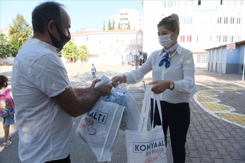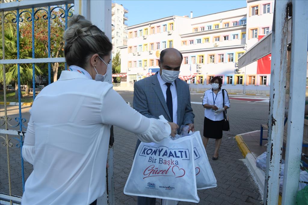 Koronavirüs salgını gölgesinde okul öncesi ve ilkokul 1. sınıf öğrencileri için yeni eğitim-öğretim yılı başladı. 21 Eylül Pazartesi günü itibariyle ders başı yapan öğretmen ve öğrencileri için Konyaaltı Belediyesi, hijyen kiti ve maske dağıttı. İlçe genelinde anaokulu, ilkokul, ortaokul ve lise olmak üzere toplam 45 okula 6 bin ıslak mendil ve maske dağıtıldı.