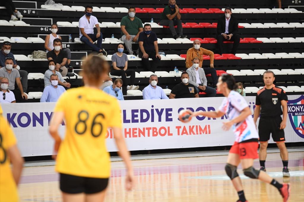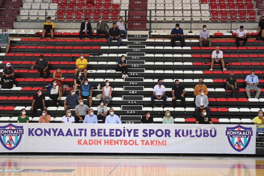 Hentbol Kadınlar Süper Ligi’nin ilk hafta mücadelesinde Antalya’nın iki takımı, Konyaaltı Belediyesi Spor Kulübü ve Muratpaşa Belediyesi Spor Kulübü karşı karşıya geldi. Antalya Spor Salonu’nda oynanan karşılaşmayı Konyaaltı Belediye Başkanı Semih Esen, CHP İl Başkanı Nusret Bayar’la birlikte izledi. Pandemi koşulları nedeniyle seyircisiz oynanan karşılaşmaya Konyaaltı Belediyesi Kadın Hentbol Takımı, anlamlı bir pankart ile sahada yerini aldı. Karşılaşmanın başlangıç seremonisinde Konyaaltı Belediyesi’nin genç hentbolcuları, Akdeniz Üniversitesi Hastanesi’nde tedavisi süren Antalya Büyükşehir Belediye Başkanı Muhittin Böcek için “Türkiye Seninle Muhittin Böcek” pankartı taşıyarak, acil şifalar dileğinde bulundu.