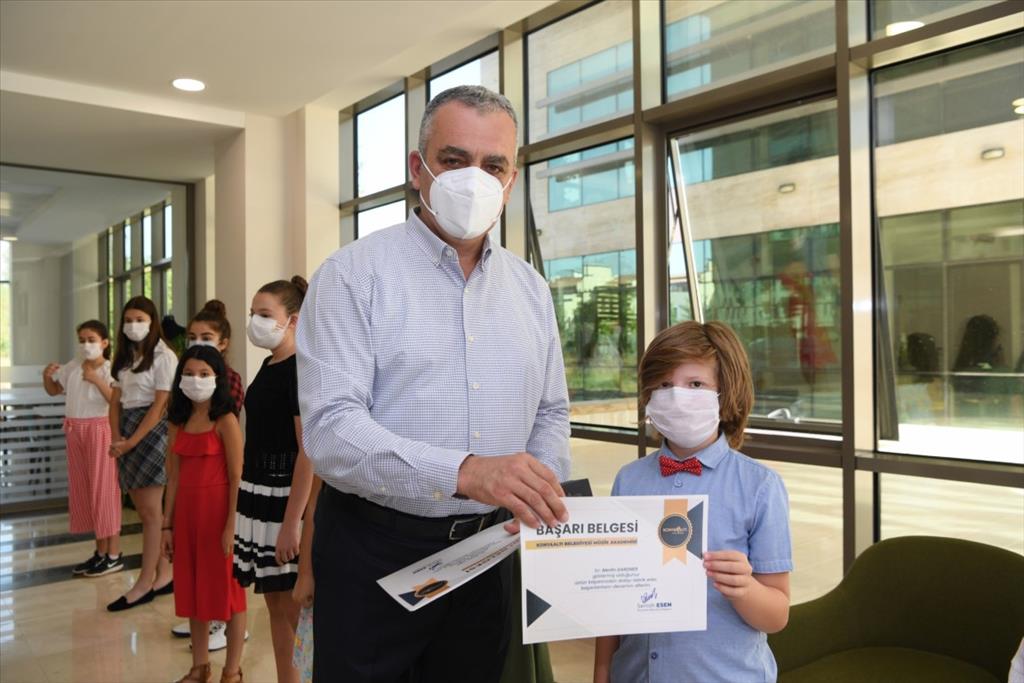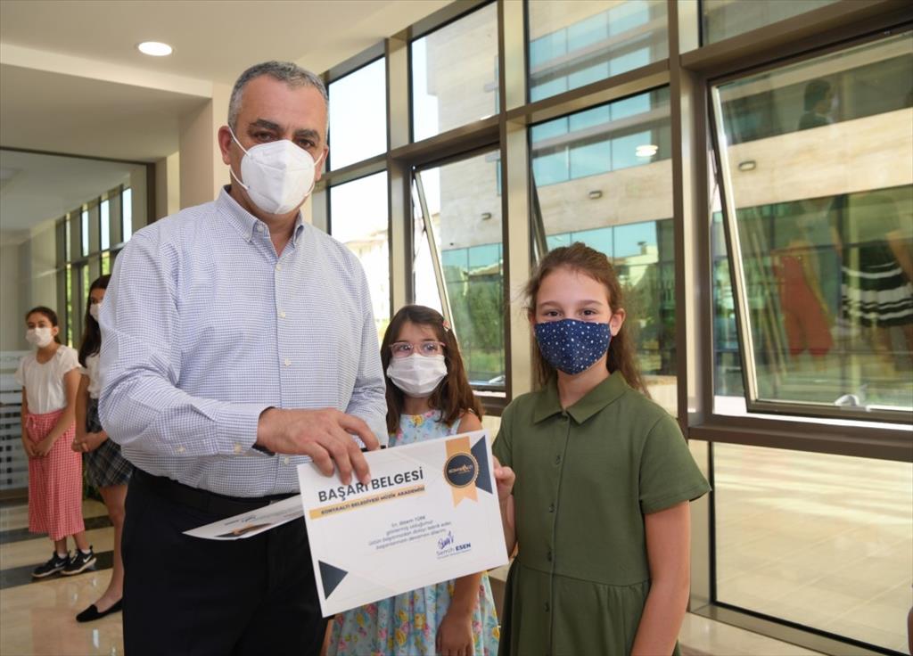 Başkan Esen, konuşmasından sonra yetenek sınavlarını kazanan öğrencilere başarı belgelerini ve hediyelerini verdi.