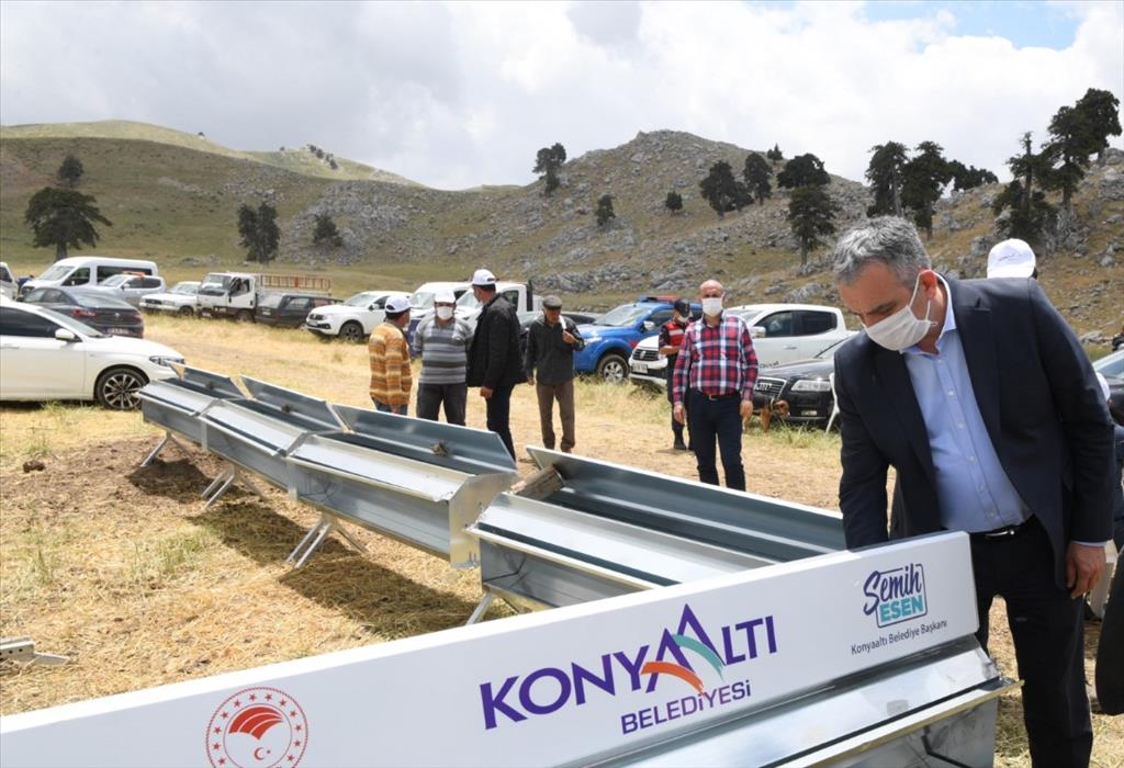 Başkan Semih Esen, “Konyaaltı denilince akla deniz, sahil geliyor ama bir de yaylalarımız var. Hayvancılık ve tarım yaylalarda etkin devam ediyor. Konyaaltı’da 22 bin küçükbaş hayvan varlığı söz konusu. Bunların bazı ihtiyaçlarının giderilmesi köylüler tarafından zorlukla gerçekleştiriliyor. Bazı ihtiyaçların belediyemiz tarafından karşılanması köylülere önemli bir destek sağlıyor. Geçen sene tanımlı aşılarının ücretlerini belediye olarak biz üstlendik. Bu uygulama başka belediyelere örnek oldu. Ardından başka bir ihtiyacı fark ettik. Dış parazitlere karşı bir banyo ihtiyaçlarını gördük, ilaçlı suyla hayvanların banyo yapmalarını sağladık. Bu sistemi satın aldık ve yetiştiricilerin hizmetine sunduk. Şu ana kadar 15 bin hayvanın ilaçlanmasını sağladık. Hayvanların iki haftada bir ilaçlanması gerektiği söyleniyor, bütçemizde bu işi için yeniden pay ayırıp ilaçlama işini hiç aksamadan tüm hayvanlara uygulanmasını sağlayacağız. Üreticinin memnun olması bizim için sevindirici oldu. Önümüzdeki yıl ilaçlamanın verimini yüzde 100 olarak göreceğiz” diye konuştu.