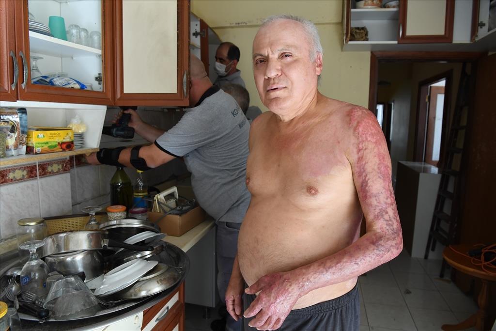 “Konyaaltı Belediyesi Emekli Kahvesi’nden eve dönmüştüm. Kendime yumurta yapmak istedim. Mutfakta hazırlığa başladım. Ocağı açtım ve sofrayı hazırlamak için masaya geçtim. O esnada büyük bir patlama duydum. Başıma mini fırının bir parçası çarptı. Her yer alev içindeydi. Can havliyle kendimi alevlerin içinde dışarı attım. Sonrasını zaten hatırlamıyorum.”
