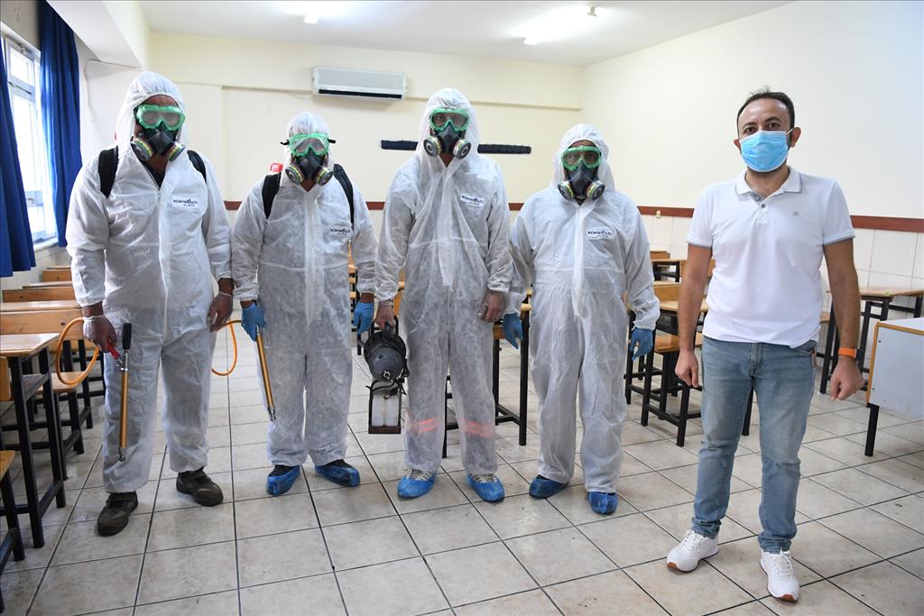 Milli Eğitim Bakanlığının aldığı karar ile 12 Ekim Pazartesi günü itibariyle okul öncesi ve 1. sınıflara ek olarak 2,3,4 ve 8 ile 12’nci sınıflar da yüz yüze eğitim-öğretime açılıyor. Tedirgin olan ailelerin içini bir nebze olsun rahatlatacak müjde ise Konyaaltı Belediyesi’nden geldi. Konyaaltı Belediyesi, Akdeniz Üniversitesi tarafından geliştirilen ve yüzeylerdeki virüs, bakteri ve mantarlara karşı içeriğinde iyonik nano gümüş ile 7 güne kadar etkin koruma sağlayan ‘Nanofob’ isimli sıvı ile okullarda dezenfekte çalışması başlattı. Yüzeylerde 7 gün boyunca yüzde 99, 99 oranında koruma sağlayan ‘Nanofob’ isimli sıvı dezenfektan ile bakteri, mantar ve virüsü tamamen bitirmeyi amaçlayan Konyaaltı Belediyesi, bu çalışmanın ilk uygulamasını, Akdeniz Üniversitesi Fen Fakültesi öğretim üyesi Prof. Dr. Ertuğrul Arpaç ve ekibinin önderliğinde Konyaaltı Anadolu Lisesi’nde yaptı.