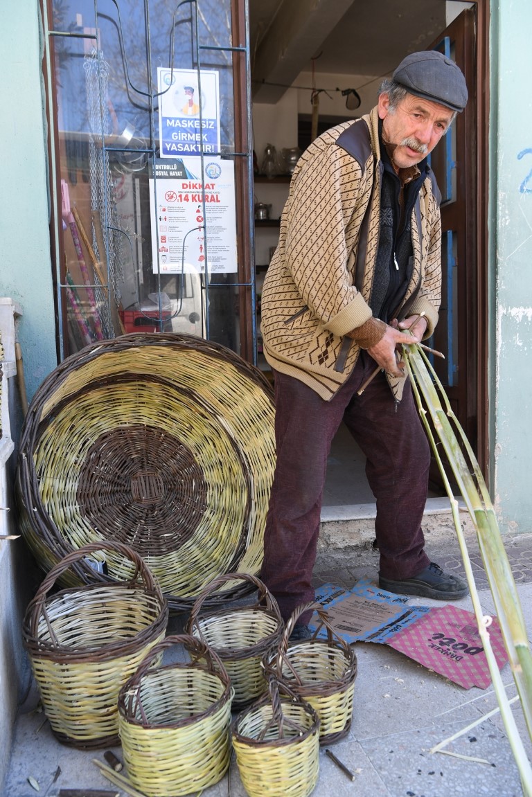 Kaybolmaya yüz tutmuş mesleklerinden biri olarak gösterilen sepetçilik, Konyaaltı’nda yeniden can buldu. Doyran Mahallesi’nde market işleten Durmuş Uygun, ekonomik sıkıntılar nedeniyle yıllar sonra tekrar baba mesleğini eline aldı. Markette boş kaldığı zamanlarda dağlardan topladığı malzemelerle ekmek selesi ve yumurta sepeti ören Uygun, market işlerinin kötü gittiği bu günlerde el işçiliğiyle kendisine ek gelir sağlıyor. Pandemi öncesi işlerinin iyi olduğunu, ancak pandeminin etkisiyle işlerinin azaldığını söyleyen Uygun, bu nedenle de dükkandaki boş zamanlarında yeniden baba mesleğini icra etmeye başladığını kaydetti. 40 yıl önce de sepetçilik yaptığını dile getiren Uygun, Konyaaltı Belediyesi’nin kendi mesleğinin içinde bulunduğu kaybolmaya yüz tutmuş meslekleri ayakta tutmaya yönelik girişimlerini değerli olduğu aktardı.