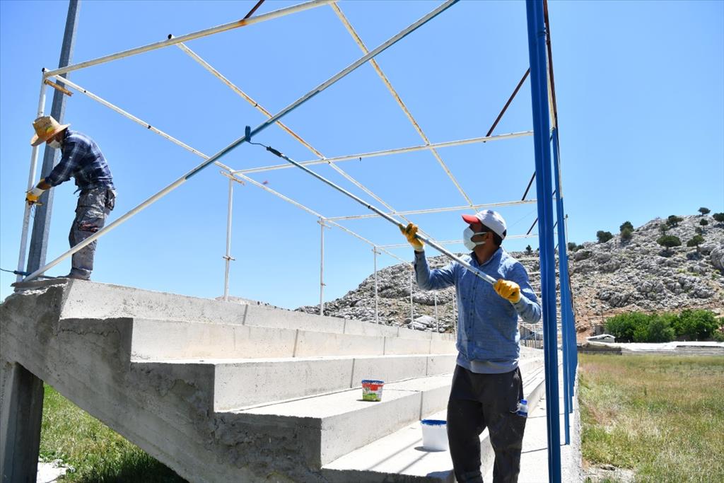 Konyaaltı Belediyesi Geleneksel Feslikan Yağlı Pehlivan Güreşleri hazırlıkları başladı. Geçen yıl pandemi nedeniyle yapılamayan Feslikan Güreşleri, bu yıl 25 Temmuz Pazar günü seyircisiz gerçekleştirilecek. Konyaaltı Belediyesi ekipleri, güreşler öncesi Feslikan Yaylası’nda hazırlıklara başladı. Ekipler, güreş sahası çevresinde hummalı bir çalışma gerçekleştiriyor. Tribün demirlerini elden geçiren ekipler, tuvaletlerde de düzenlemeler yaptı. Belediye ekipleri, güreş sahasının çimlerinde de düzenleme yapıyor.