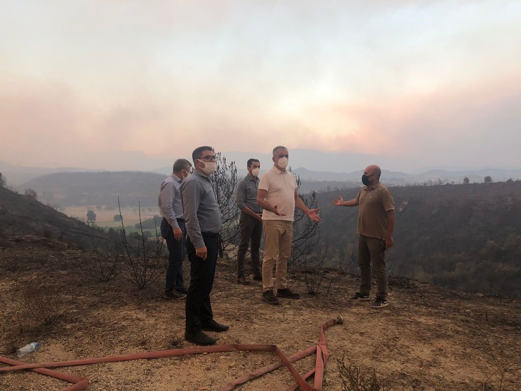 Konyaaltı Belediye Başkanı Semih Esen, Manavgat’ta meydana gelen orman yangını sonrasında Konyaaltı Belediyesi’nin bütün ekiplerini seferber etti. Başkan Esen, belediyenin arazöz, iş makineleri ve çok sayıda ekibini yangının çıktığı andan itibaren Manavgat’a yönlendirdi. Ekiplerin çalışmalarını yerinde incelemek ve ihtiyaçların tespit edilmesi noktasında yangın bölgesinde incelemelerde bulunan Esen, Manavgat Belediye Başkanı Şükrü Sözen ile birlikte yangın bölgesinde devam eden çalışmaları takip etti. Şükrü Sözen’e geçmiş olsun dileğinde bulunan Semih Esen, Manavgatlı vatandaşların üzüntülerini paylaştı.