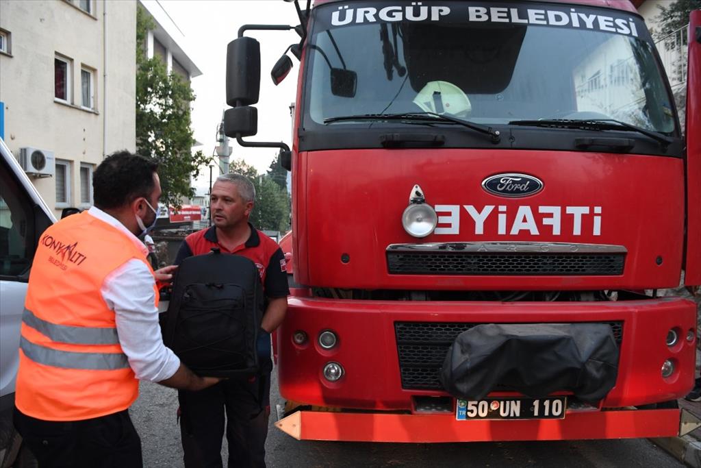 Sahadaki çalışmaları inceleyen Konyaaltı Belediye Başkanı Semih Esen, 10 gündür adeta gece gündüz çalışan itfaiye erlerine yardım çantası gönderdi. Başkan Esen, “Ülkemizin dört bir yanından gelen kahraman itfaiye ekiplerimize, içinde yangına dayanıklı malzemelerin bulunduğu acil yardım çantası dağıttık. Yangın felaketine karşı günlerdir canla başla mücadele eden tüm kahraman itfaiye erlerimize sonsuz teşekkürlerimi sunuyorum. Ayağınıza taş değmesin” dedi.
