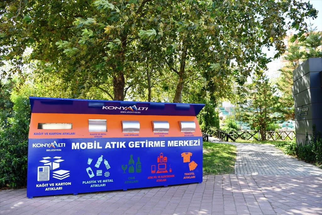 Konyaaltı Belediyesi, ‘sıfır atık projesi’ kapsamında Toros Mahallesi Muhtarlığı önü (Mevlana Parkı), Uluç Mahallesi Çayırlı Hacı Mustafa Karabulut Parkı, Liman Mahallesi Şehit Hava Binbaşı Cengiz Toytunç Parkı, Kuşkavağı Mahallesi Dr. Orhan Yener Parkı ve Liman Mahallesi Dostluk Parkı olmak üzere beş noktaya ‘mobil atık getirme merkezi’ yerleştirdi. Şimdilik beş mahallede konumlandırılan merkezlerde küçük elektronik eşyalar, kağıt ve karton atıkları, plastik ve metal atıkları, cam, tekstil ve pil atıkları amacına uygun bir şekilde toplanacak.