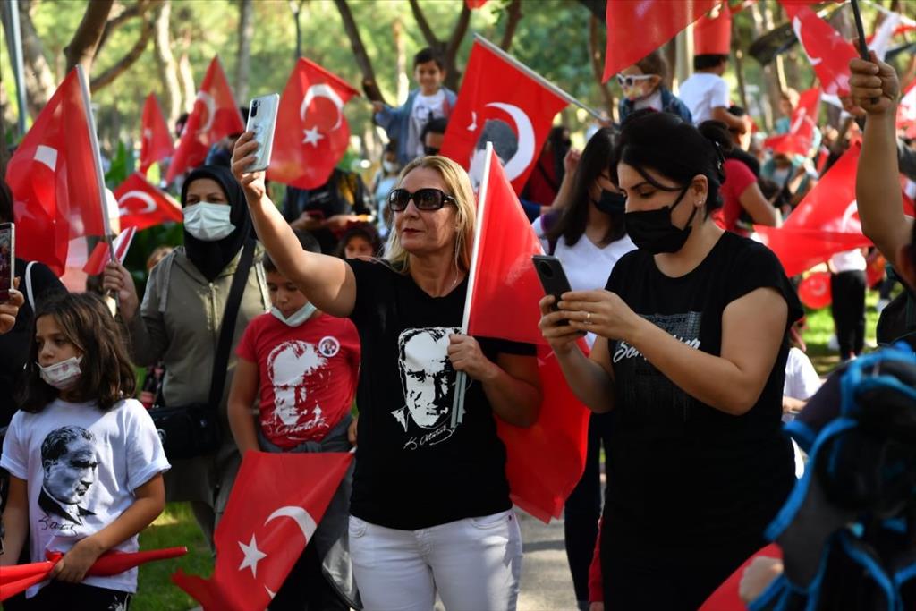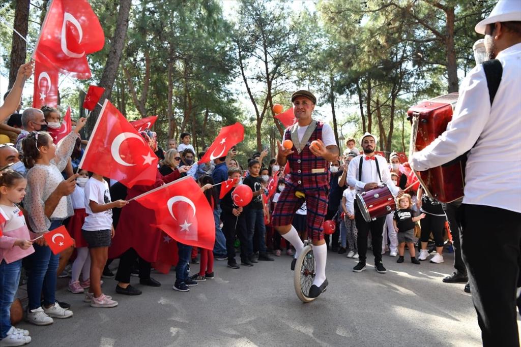 Konyaaltı Belediyesi, Cumhuriyet’in 98’inci yılı dolayısıyla Antalya’daki farklı sivil toplum kuruluşlarının desteğiyle kutlama programı düzenledi. HayatPark’ta düzenlenen Cumhuriyet Bayramı Şenlikleri renkli görüntülere sahne oldu. Çok sayıda vatandaş, çocuklarıyla şenliklere akın etti. Saat 12.00’deki şenlikler, çocukların kortejiyle başladı. Konyaaltı Belediye Başkanı Semih Esen, CHP Antalya İl Başkanı Nuri Cengiz, CHP Antalya milletvekilleri Rafet Zeybek, Cavit Arı, Aydın Özer, CHP’li yöneticiler, meclis üyeleri, şenliklere katkı veren STK yöneticileri minikleri kortejde selamladı. Alana kurulan iki farklı sahnede gün boyunca etkinlikler devam etti. Bir sahnede jimnastik gösterisi devam ederken, bir sahnede de belediyenin düzenlediği 98’inci Yıl Cumhuriyet Çocukları Resim Yarışması’nın ödül töreni düzenledi. Başkan Semih Esen, dereye giren öğrencilere ödüllerini verdi. Çocuklar için eğlenceli atölyeler gün boyunca devam etti. ‘Şanslı’ isimli tiyatro oyunu da tiyatro severlerin ilgisini çekti.