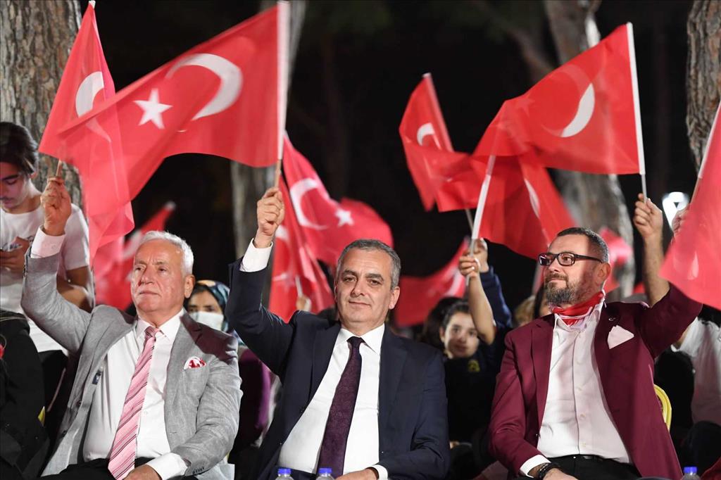 Konyaaltı Belediye Başkanı Semih Esen de HayatPark’taki etkinliklere katıldı. Gecenin finalinde vatandaşlara seslenen Esen, yıllarca Kaş’taki cumhuriyet kutlamalarının örnek gösterildiğini kaydetti. Kutlamaları da halkın organize ettiğine vurgu yapan Esen, ‘Biz de Kaş’taki kutlamaların denemesini Konyaaltı’nda yaptık. Vatandaşlarımızın katılımıyla da çok güzel oldu. Biz bu kutlamaları tek başımıza yapmadık. Pek çok paydaşımız vardı. Özellikle Antalya’daki bütün iş insanları dernekleri coşkuya sponsor ve paydaşlar olarak ortak oldu’ dedi.
