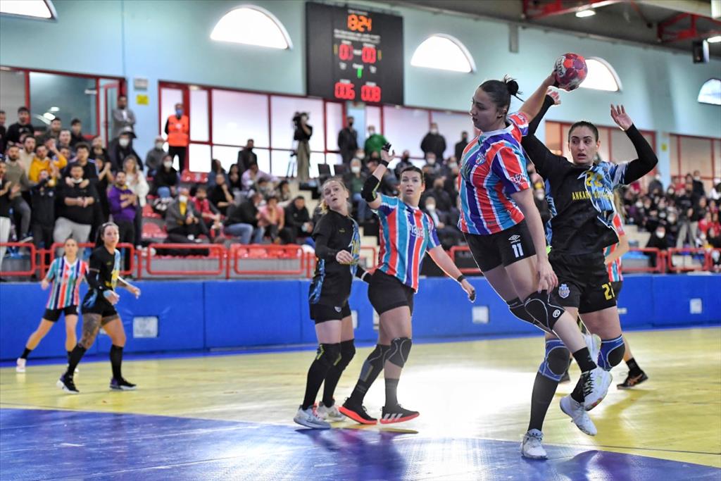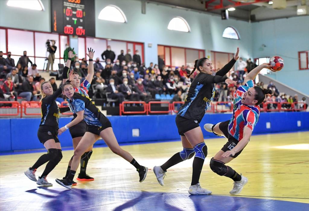 Hentbol Kadınlar Süper Ligi’nde zirve mücadelesi veren Konyaaltı Belediyespor, ilk yarıda ertelenen iki maçından ilkinde EGO Spor takımını konuk etti. Akdeniz Üniversitesi Mavi Salon’da gerçekleşen karşılaşmanın ilk yarısını 15-16 geride kapatan Mavi Kelebekler, ikinci yarıya daha iyi savunma yaparak başladı. İlerleyen dakikalarda oyun üstünlüğünü ele geçiren Konyaaltı, Edanur ve Monica’nın peş peşe kaydettiği gollerle öne geçti ve son saniyeye kadar skor üstünlüğünü sürdürdü. Maç sonunda tribünlere giderek taraftarları selamlayan Mavi Kelebekler’in sevincine, maçı başından sonuna kadar takip eden Konyaaltı Belediye Başkanı Semih Esen ve kulüp yöneticileri de alkışlarıyla ortak oldu.