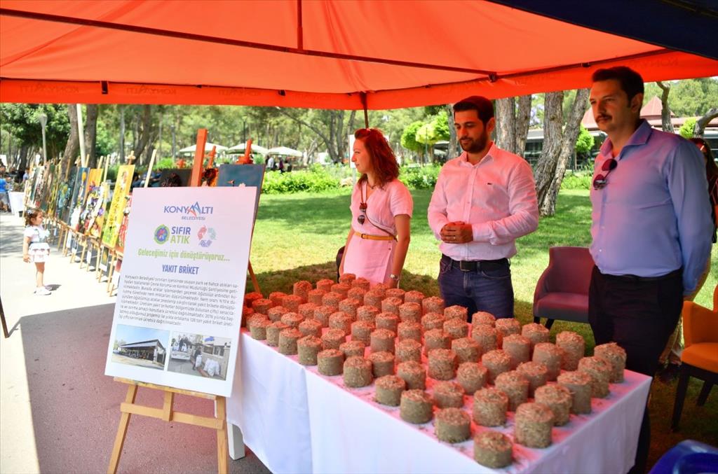 Konyaaltı Belediyesi olarak 5 Haziran Dünya Çevre Günü dolayısıyla bir dizi etkinlik hazırladıklarını söyleyen Çevre Koruma ve Kontrol Müdürü Mustafa Öndegiden, alana gelen vatandaşları, ürettikleri projeler ve sıfır atık konusunda bilgilendirdiklerini söyledi. Öndegiden, ‘’Bu yıl da atıklardan oluşan bir sergi açılışımız oldu. Sıfır atık sistemini anlattığımız atık kodlarıyla beraber, yaklaşık bin 600 noktaya bıraktığımız toplama ekipmanlarını tanıttığımız standlarımız ve ‘’atıktan sanata’’ adlı sergimiz bulunmakta. Yine, belediye personellerimizin ürettiği, doğada bulunan ahşap atıkların yorumlanmasıyla üretilen ahşap dekoratif ürünler de standlarımızda sergileniyor. Amacımız, ilçemizi marka ve yeşil bir kent anlayışı içerisinde, çağdaş ve muadillerinin üzerine çıkarmaktır’’ şeklinde konuştu.