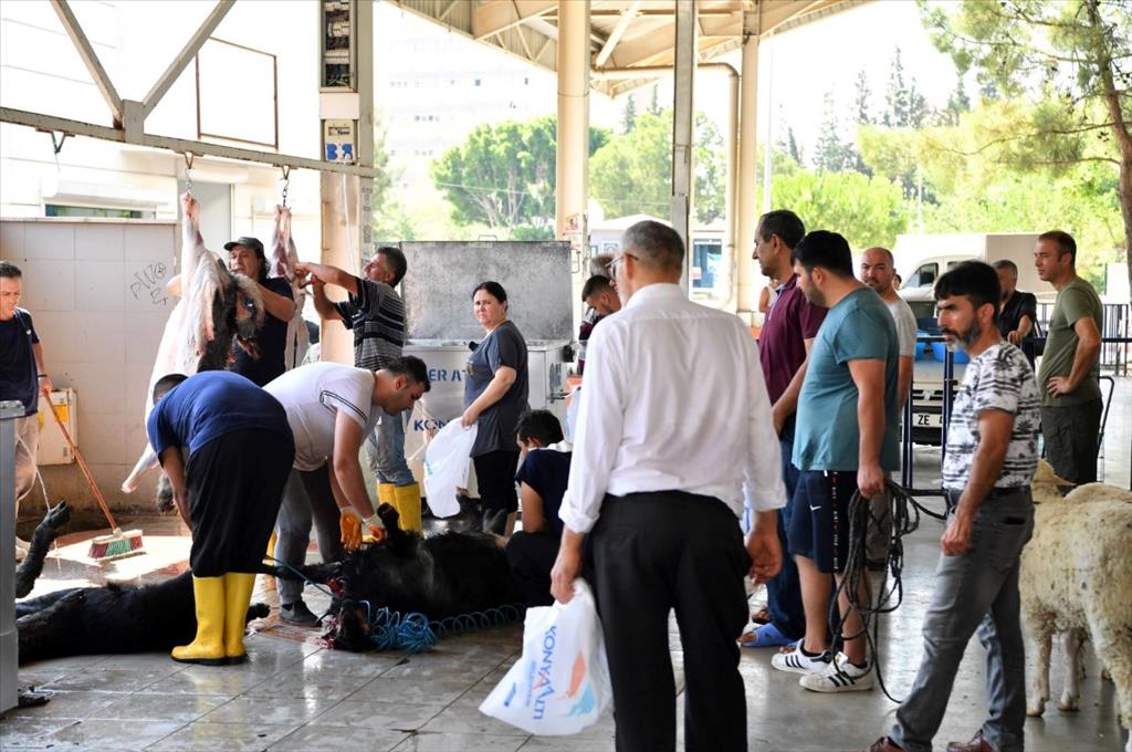 Konyaaltı Belediyesi, Kurban Bayramı’nda kurban kesecek vatandaşlar için Siteler, Altınkum ve Liman mahalleleri olmak üzere 3 ayrı kurban kesim noktası oluşturdu. Siteler ve Liman mahallelerinjn kapalı pazar yerlerinde küçükbaş hayvanların kesimi yapılırken, Altınkum kapalı pazar yerinde ise büyükbaş hayvanların kesimi yapıldı. Daha önceden online olarak kurban kesimi için randevu verilen vatandaşların işlemleri, hijyen kurallarına da dikkat edilerek sırasıyla gerçekleştirildi. Kurban Bayramı’nda iyi dileklerde bulunan Konyaaltı Belediye Başkanı Semih Esen, “Vatandaşlarımızın ihtiyaç duyduğu her an yanındayız. Her Kurban Bayramı’nda olduğu gibi bu yıl da ücretsiz kurban kesim hizmeti veriyoruz. Gerekli tüm hijyenik koşulları alıp, uzman kasaplarımızı görevlendirdik” dedi.