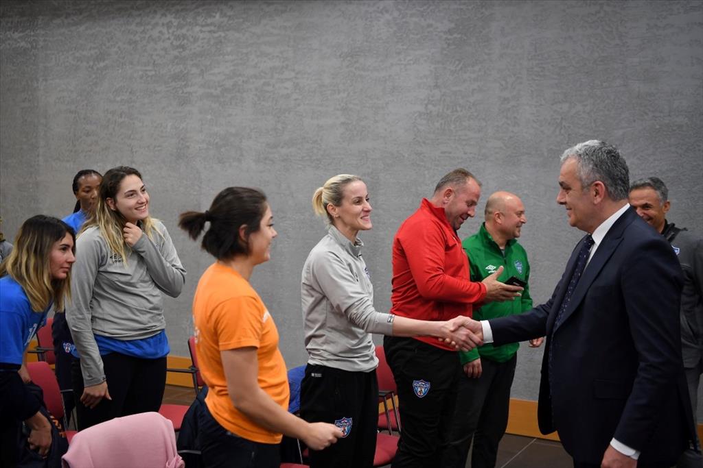 Özellikle kadınların toplumda öne daha fazla çıkmaları gerektiğini ifade eden Esen, kadınların başarılı ve mutlu olmaları kendileri için çok önemli olduğunu dile getirdi. Her yıl önlerine yeni hedefler koyarak yollarına devam ettiklerini söyleyen Başkan Esen, artık hedeflerinin Antalya’ya ve Türkiye’ye kupa getirmek olduğunu belirtti. Sporcularının tüm bunları başaracak potansiyele sahip olduğunu kaydeden Esen, “Bizi çok mutlu ettiniz ve gururlandırdınız. Büyük bir heyecanla, size çok streste yüklemek istemiyorum, içimde bir his kupanın geleceğini söylüyor bana. Bunu yaşarsak çok büyük bir mutluluk duyacağım. Hem bana hem kendinize yaşatmayı istediğinizi biliyorum. Bir hayalim var. Maalesef Türkiye’nin şartlarından dolayı gecikme yaşadık. Maçları ve idmanları yaptığımız sahanın, konaklama ve sosyal tesislerin bir arada olduğu ve belki de Türkiye’nin en önemli konaklama tesisinde sizleri bir araya getirmek istiyorum. Önümüzde ki dönemde yapmayı planlıyoruz” diye konuştu.