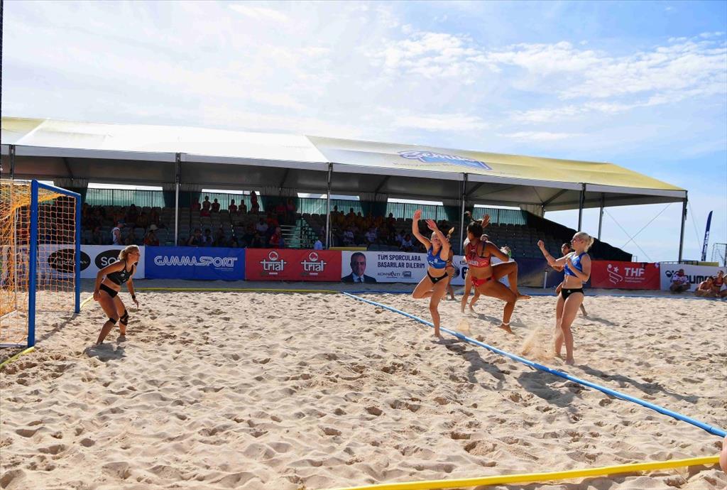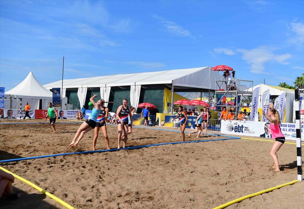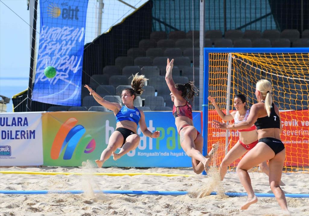 Konyaaltı Belediyesi’nin ev sahipliği yaptığı Avrupa Plaj Hentbolu 2023 Finalleri başladı. Sabah saat 09.00’da ilk düdüğün çalmasıyla başlayan maçlar, kıyasıya mücadele ile sürdü. İlk turda 6 kadın 6 erkek takımı mücadele ederken, günün ilerleyen saatlerinde Türkiye’yi temsil edecek olan Konyaaltı Belediyesi SK Kadın Hentbol takımı sahaya çıkacak. Konyaaltı Sahili’nde maç izleyerek kefili bir gün geçirmek isteyen vatandaşlar ise tribünlerdeki yerini aldı. Düzenledikleri şampiyonanın hem Konyaaltı hem de Antalya için büyük bir önem taşıdığını kaydeden Konyaaltı Belediye Başkanı Semih Esen, maçların ücretsiz olduğunu ifade ederek, “Kentimizin sportif faaliyetlerle buluşturmaya devam ediyoruz. Özellikle böyle büyük organizasyonlar düzenlememizin sebebi, hem Antalya’nın spor turizmine katkı sağlamak hem de yurttaşlarımızı bu tarz spor aktivitelerine yönlendirmek. Ev sahipliğini yaptığımız Avrupa Plaj Hentbolu 2023 Finalleri bugün başladı. 11 Haziran Pazar günü sona erecek. Müsabakaları izlemek isteyen yurttaşlarımız, belediye ana hizmet binamızın Konyaaltı Sahili bandında bulunan alana gelebilir ve maçları ücretsiz izleyebilir. Müsabakalarda yer alan başta takımımız olmak üzere tüm takımlara başarı diliyorum” şeklinde konuştu.
