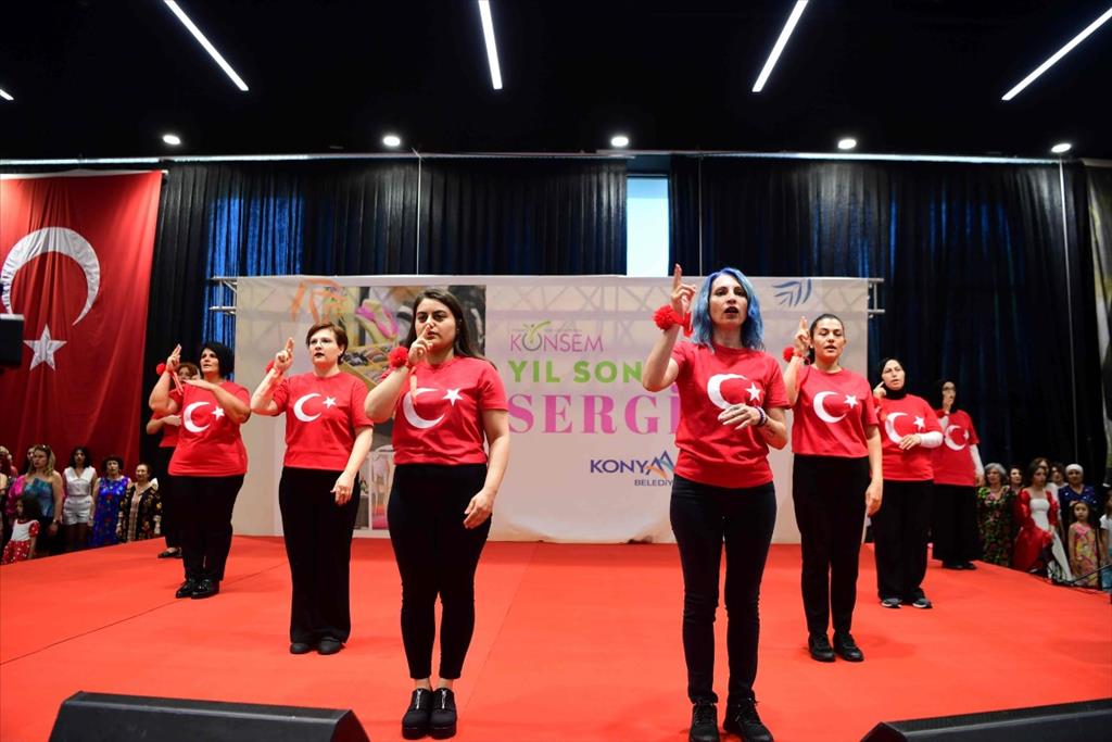 Yüzlerce vatandaşın katıldığı KONSEM Yıl Sonu Sergisi, kursiyerlerin diktiği kıyafetlerin defilesi ve Konyaaltı Belediyesi Halk Oyunları gösterisi ile devam etti.