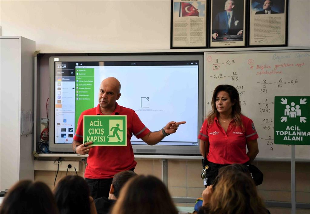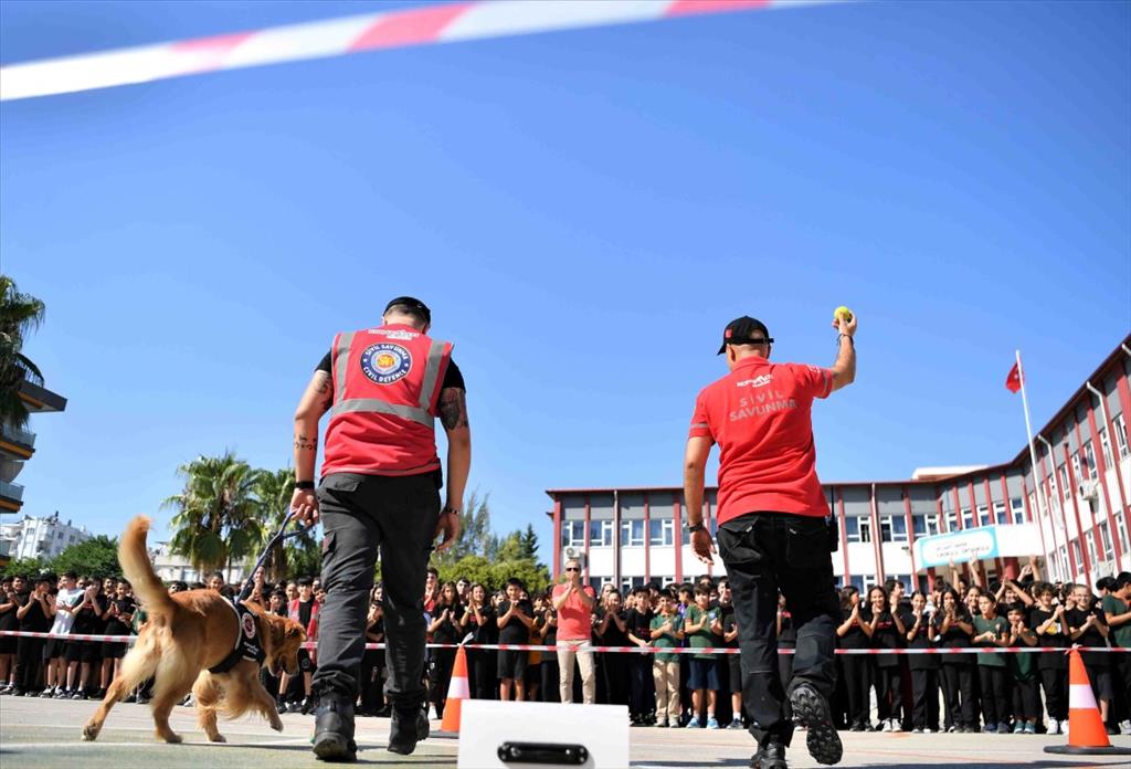 Tatbikatta Dr. Cahit Ünver İlkokulu-Ortaokulu’nda 7’nci sınıf öğrencilerine afet durumunda başlarına gelebilecek olaylardan nasıl korunabileceklerini anlattıklarını söyleyen Konyaaltı Belediyesi Sivil Savunma Uzmanı Sinan Toprak, “Eğitimin ardından Konyaaltı Belediyesi arama kurtarma köpeğimiz Zeyna ile beraber okul bahçesinde arama kurtarma köpeği neler yapar öğrencilerimize onu gösterdik. Bu tür eğitimlerin her türlü kurum ve kuruluş tarafından desteklenip çoğalmasını diliyoruz. Çocuklara eğitim vererek daha bilinçli toplum amaçlıyoruz. Hedefimiz afet bilinci” dedi. Irmak Yıldız da “Deprem tatbikatı yaptık. Deprem olduğunda korkmamamız lazım. Tatbikatta deprem olduğunda korkmadan yavaş bir şekilde toplanma alanına nasıl gideceğimiz gösterildi. Konyaaltı Belediye Başkanı Semih Esen’e teşekkür ederim” diye konuştu.
