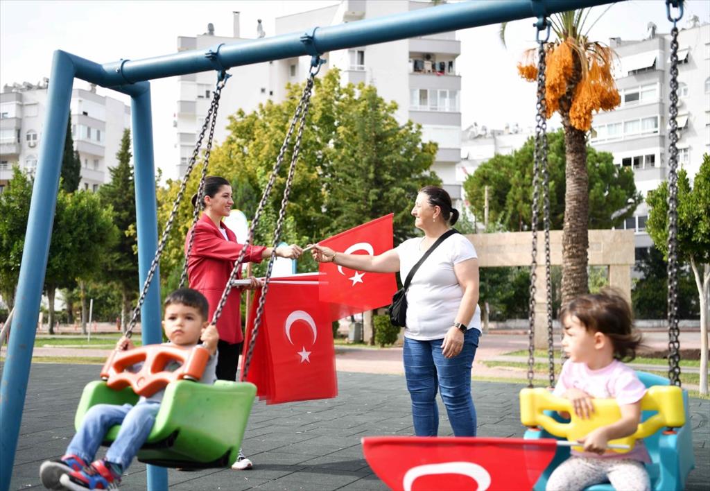 Öte yandan Konyaaltı Belediyesi, Antalya Valiliği genelgesi doğrultusunda 100’üncü yıl baskılı 25 bin Türk bayrağını okullara dağıttı. Belediyenin oluşturduğu ekipler, gün boyunca okulları ve sokakları tek tek gezerek ilçenin dört bir yanında bayrak dağıtımına devam etti. Cumhuriyet’in 100. yılını her zamankinden daha büyük bir coşkuyla kutlayacaklarını aktaran Konyaaltı Belediye Başkanı Semih Esen, “1923 yılında Türk halkı büyük bir değişim ve büyük bir yenilikle, artık kurucu iradenin bir ailede değil milletin kendisinde olduğu bir yönetim şekline kavuştu. Türk kadınının, bugün emsalleri olan tüm İslam ülkelerindekinden çok daha özgür bir ortamda olması ve geleceğini daha aydınlık görebilmesi Ulu Önderimiz Gazi Mustafa Kemal Atatürk’ün kurduğu Türkiye Cumhuriyeti sayesindedir. Bizler, Ata’mızın torunları ve evlatları olarak sadece Türkiye Cumhuriyeti’nin varlığını korumakla değil, Cumhuriyet’in niteliklerini korumakla da yükümlüyüz” dedi.