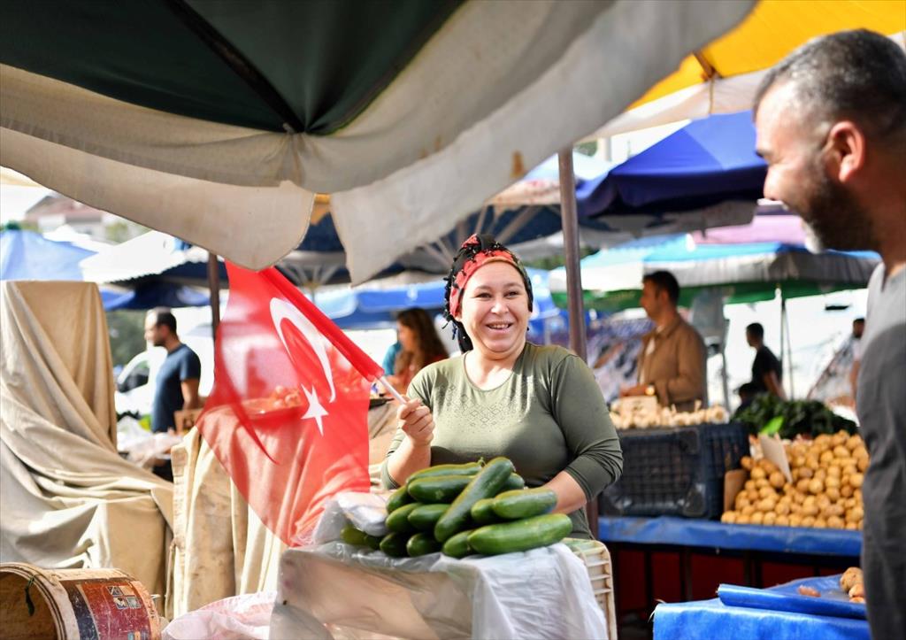 Konyaaltı Belediyesi, Cumhuriyet’in 100. yılına özel hazırlıklarını sürdürüyor. Belediye ekipleri, bir yandan vatandaşlara yaklaşık 75 bin bayrak dağıtımı yapılırken diğer yandan cadde ve sokakları donatmaya devam ediyor. Konyaaltı’nda 100. yıl coşkusunun her evde yaşanması için, ilçenin kent merkezinden kırsal bölgelerine kadar Türk bayrağı dağıtımı süreceği belirtildi. Mahalle muhtarlıkları, pazar yerleri ve kentin işlek noktalarında bayrak dağıtımının devam edeceği bildirilirken, ilçe sakinleri bayrak kampanyasından dolayı belediyeye teşekkür etti. Bayraklarını alan vatandaşlar, ‘yaşasın Cumhuriyet, Cumhuriyet özgürlüktür, Atatürk sayesinde’ diyerek duygularını tek cümle ile dile getirdi.