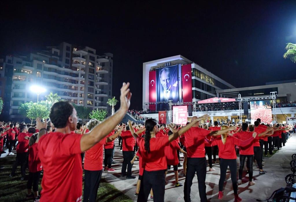 Saatler 19.23’ü gösterdiğinde belediye binası önünü dolduran ve günlerdir Konyaaltı Halk Oyunları ekibi eğitimcisi Mehmet Bağcı’dan ders alan 1923 gönüllü, aynı anda Atamızın en çok sevdiği oyun olan Zeybek oynadılar. Zeybekleri büyük bir gururla izleyen Konyaaltı Belediye Başkanı Semih Esen, “Sizler burada Atamıza saygıyı, Cumhuriyetimize sevgiyi göstermek için gönüllü olmuş, kimisi doktor, kimisi işçi, kimisi erkek, kimisi kadın, kimisi çocuk, kimisi engelli 1923 Cumhuriyet sevdalısısınız. İyi ki varsınız. O kadar güzel bir iş çıkarttınız ki sizlere teşekkür ediyorum” dedi.