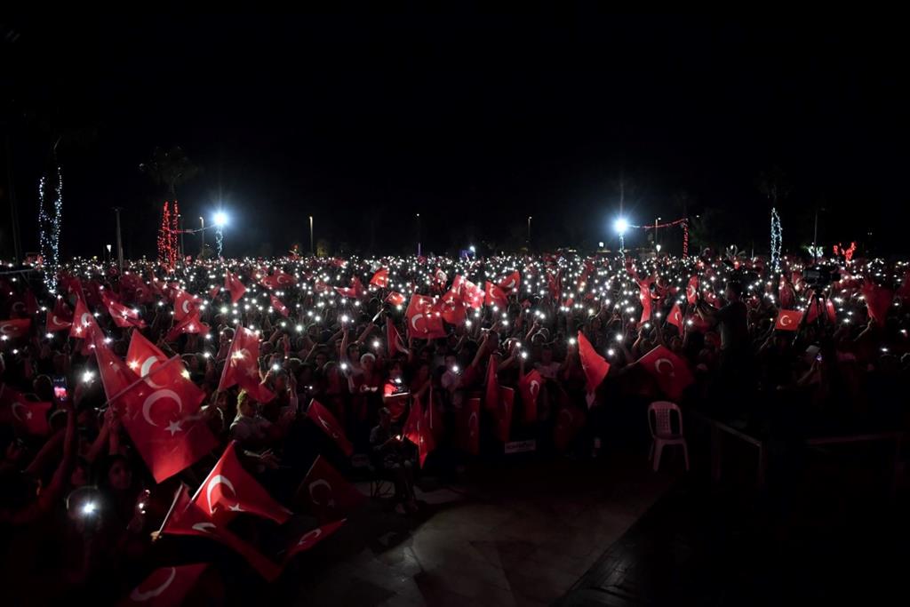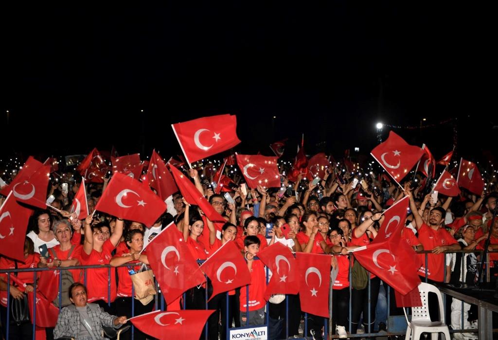 Zeybeklerin ardından sahneye sevilen sanatçı Leman Sam çıktı. “İlla İlla”, “Rüzgâr”, “Daha Gidecek Çok Yolumuz Var”, “Gönül” gibi sevilen parçalarını ve “İzmir Marşı”nı Cumhuriyet sevdalıları için söyleyen Leman Sam, “Cumhuriyete layık olanların, onun kıymetini bilenlerin bayramı kutlu olsun. Hepinizi tebrik ediyorum. Bugün Antalya’da gerçekten çok görmek istediğim bir kutlama var” dedi.
