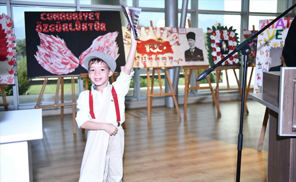 Bostan’ın konuşmasının ardından minik bir öğrenci elinde Cumhuriyet Gazetesi ile ‘Yazıyor! Cumhuriyet’in ilanı yazıyor’ şeklinde slogan attı. Ardından iki minik öğrenci Cumhuriyet şiiri okudu. Daha sonra Cumhuriyet Çocukları 100 Yaşında adlı Sergi’nin açılışı gerçekleştirildi. Bostan ve öğrenciler sergiyi gezdi. Sergi, pazar gününe kadar Konyaaltı Belediyesi hizmet binasında açık kalacak.