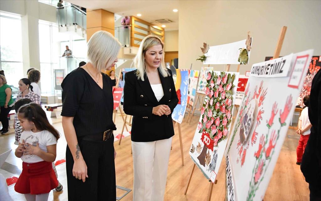 Konyaaltı Belediyesi kreşlerinde eğitim gören minik öğrencilerin el emeğiyle yaptıkları resimlerden oluşan ‘Cumhuriyet Çocukları 100 Yaşında’ sergisi belediye hizmet binasında açıldı. Açılışa Konyaaltı Belediye Başkan Yardımcısı Tuğba Erke Bostan, birim müdürleri, çalışanlar ve Konyaaltı Belediyesi’ne ait kreşlerde eğitim gören minik öğrenciler katıldı.