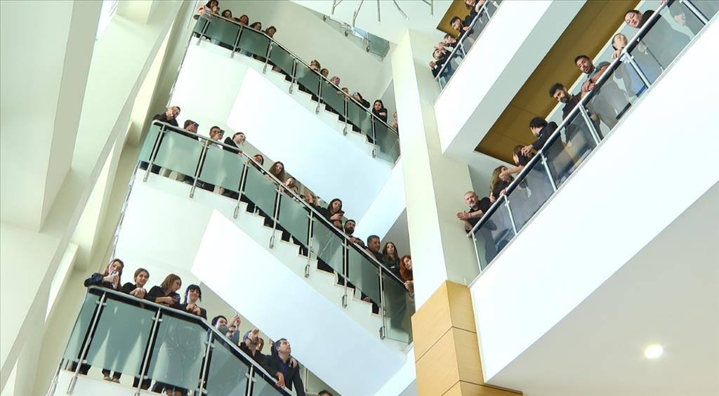 Konyaaltı Belediyesi, 10 Kasım Atatürk’ü Anma töreni düzenledi. Belediye hizmet binası önünde düzenlenen törene Konyaaltı Belediye Başkanı Semih Esen, başkan yardımcıları ve belediye personeli katıldı. Törenden sonra fuaye alanında bulunan Atatürk Sergisini ziyaret eden belediye personeli, mesaiye devam etmek için birimlerine dönerken, Defne Sıla Çetin adlı minik bir öğrencinin Andımızı okuduğu duyuldu. Andımızın okunduğunu fark eden personel bulunduğu yerden minik Defne’ye eşlik etti. O anları ölümsüzleştirmek isteyen personel, bir yandan da fotoğraf ve video çekmeyi ihmal etmedi. Anlık gelişen durum karşısında duygusal anlar yaşanırken, alanda bulunan personel, minik Defne’yi alkışladı. Andımızdan sonra çalınan Atatürk’ün sevdiği şarkılara da eşlik eden Konyaaltı Belediyesi personeli, bu anlamlı ve duygu dolu anlardan sonra mesaiye döndü.