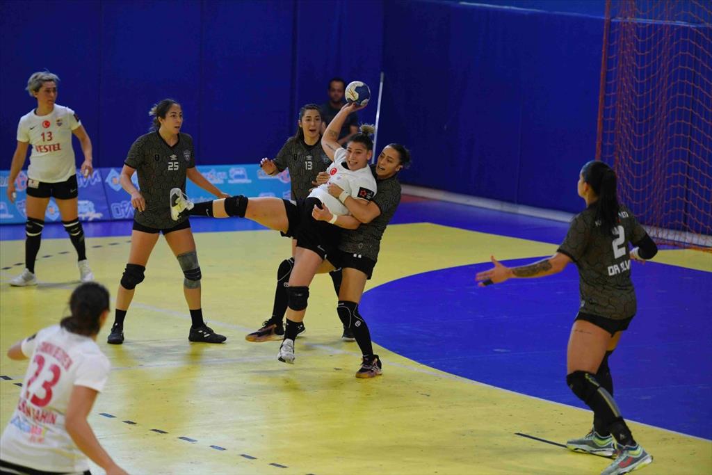 Hentbol Kadınlar Süper Lig 10’uncu hafta maçında Kastamonu Belediyesi GSK’yı konuk eden Konyaaltı Belediyesi SK Kadın Hentbol takımı, karşılaşmayı 37-29’luk skorla kazanarak ligde kayıpsız ilerliyor. Akdeniz Üniversitesi Mavi Salon’da oynan maçın ilk dakikalarından itibaren baskılı oynayan Mavi Kelebekler, devre arasını 15-13 önde kapattı. İkinci yarıda da baskısını sürdüren Konyaaltı, Kastamonu temsilcisinin defansını zor durumda bıraktı. Ligin güçlü ekiplerinden Kastamonu Belediyesi GSK mücadelesini kazanan Antalya temsilcisi, şampiyonluk yolunda önemli bir virajı geride bıraktı. Kalede Sevilay İmamoğlu Öcal üst üste kritik kurtarışlar yaparken, hücumda ise Bilgenur Öztürk attığı gollerle maçın seyrini değiştirdi. Süper Lig’deki liderliğini aldığı galibiyetle sürdüren Mavi Kelebekler, EHF Hentbol Kadınlar Avrupa Kupası’nda İspanya temsilcisi Granollers takımı ile deplasmanda 18 Kasım Cumartesi günü (Türkiye Saati ile 14.30) oynayacağı 3’üncü tur maçı öncesinde moral buldu.