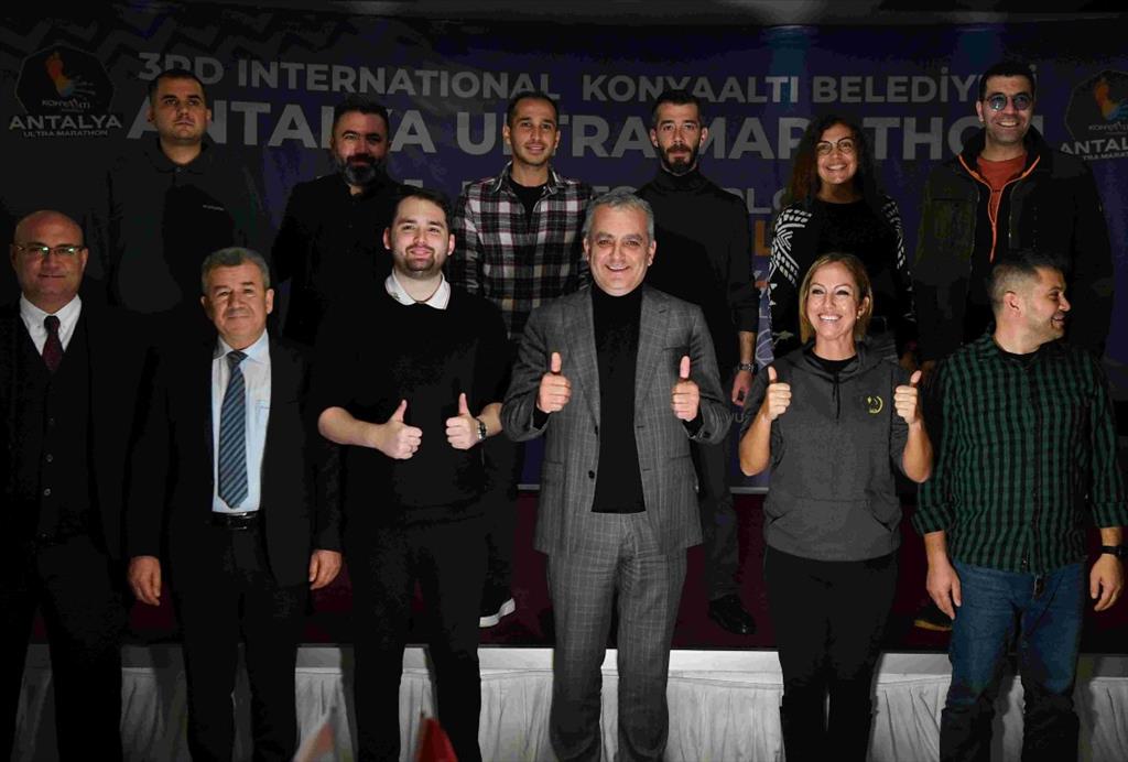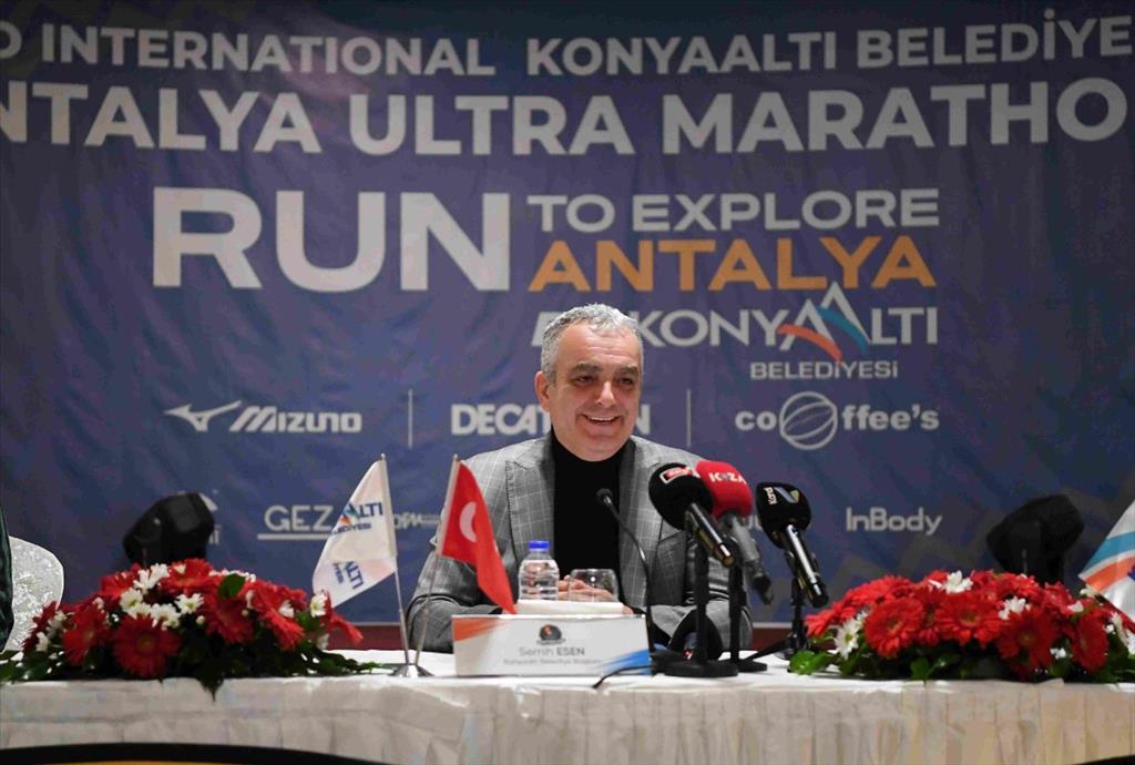 Bu yıl 23-24 Aralık tarihlerinde 3’üncüsü düzenlenecek Konyaaltı Belediyesi Antalya Ultra Maratonu’nu için basın toplantısı düzenlendi. Basın toplantısında konuşan Konyaaltı Belediye Başkanı Semih Esen, Batı Avrupa ülkelerinin Türkiye’nin çağdaş bir ülke olduğunu, Konyaaltı’ndan özellikle de Antalya’dan duyacağını söyledi. Esen, “Bu sene 3’üncüsünü düzenlediğimiz Ultra Maraton her geçen seneye göre daha da güçleniyor. Katılımcı sayısı artan bir maraton olarak bu yıla hazırız. Cumartesi günü sabah 04.30’da yarışmalarımızın ilk startımızı vereceğiz. 5 km, 12 km, 31 km, 57 km ve 85 km olmak üzere değişik uzunluktaki parkurlarda yarışma yapılacak. Yaklaşık 100 çocuğumuzun katılacağı bir çocuk koşusu ve sporsever hemşerilerimizin köpekleri ile beraber koşacakları bir pati-run koşusu da olacak’’ dedi.