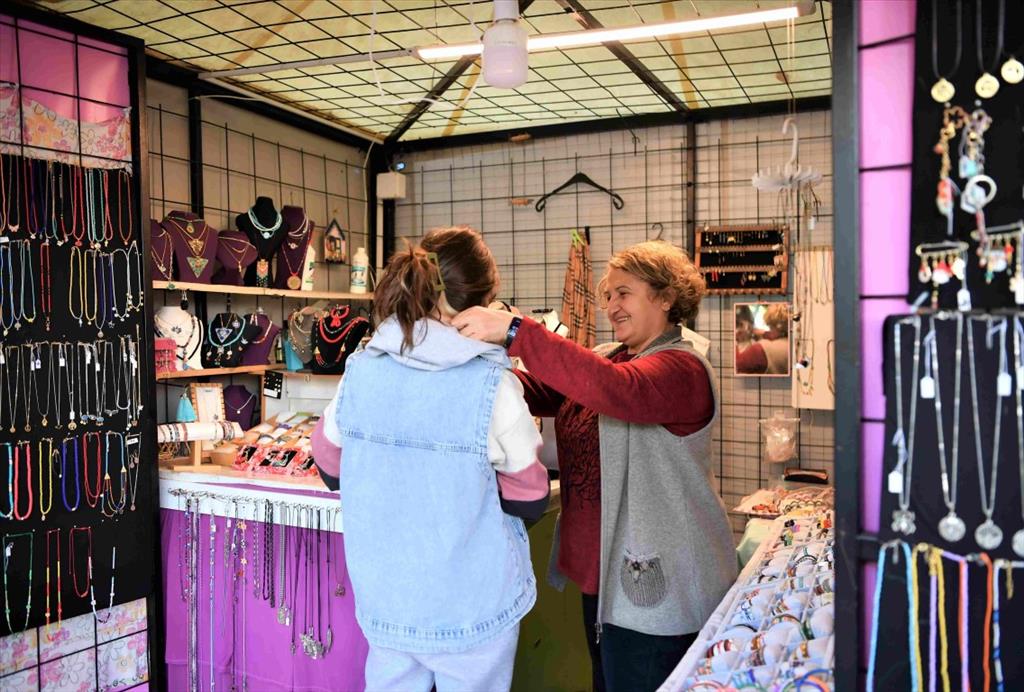 Yılbaşı ağaçlarıyla, ışıklarla süslenen Kadın Emek Pazarı, yılbaşı hediyesi almak isteyen vatandaşları bekliyor. Yılbaşına uygun konseptte hazırlanan kolye ve küpe, duvar süsleri, kar küreleri, noel babalı çam ağacı süsleri, el yapımı özel sabunlar, kaneviçi işlemeli duvar panoları ve kapı süslerinin yer aldığı Kadın Emek Pazarı, vatandaşları bekliyor.