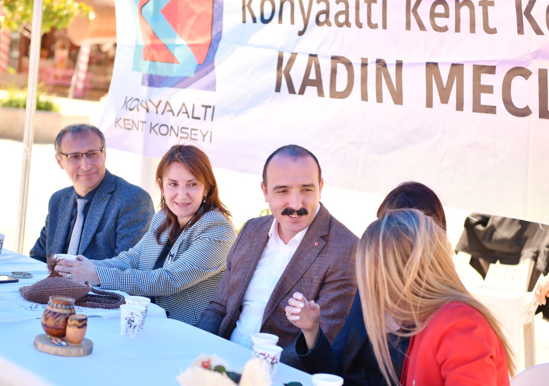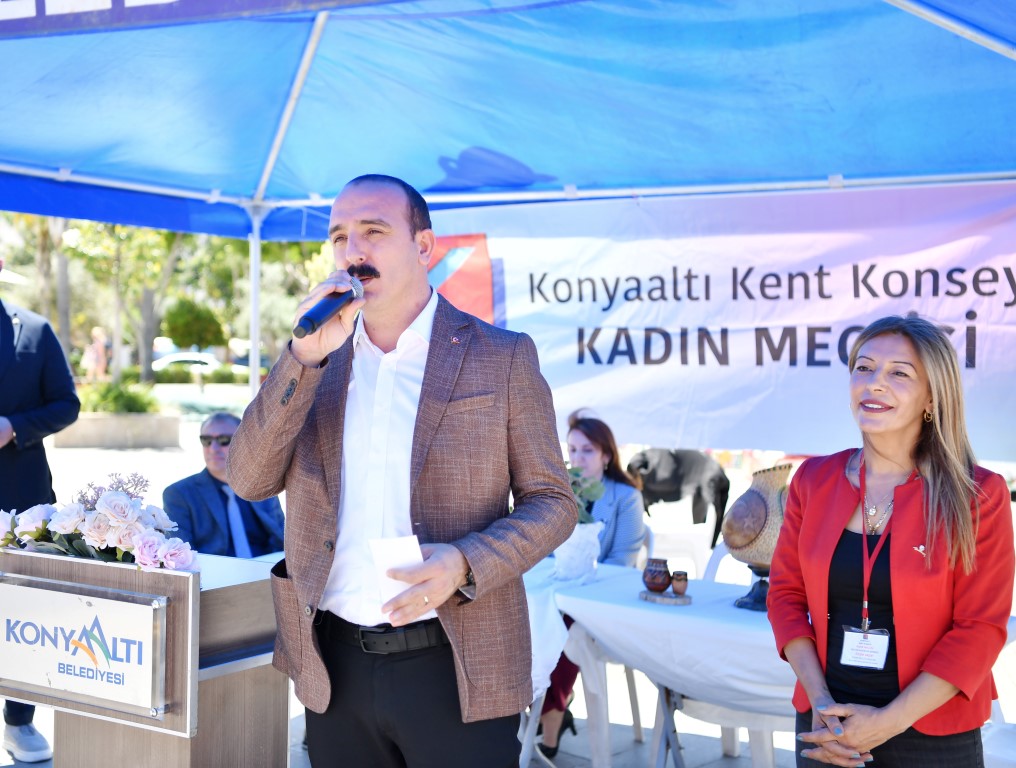Konyaaltı Belediye Başkanı Cem Kotan, Üreten Kadınlar Kermesi’nin, kadınlarla yaptıkları ilk etkinlik olduğunu söyledi. Kotan, “Bu kermes benim için çok önemli. Konyaaltı Kent Konseyi Kadın Meclisi Başkanı Özlem Saday bu projeyi önümüze getirdiğinde ivedilikle elimizden gelen her şeyi yapacağımızı söylemiştim. Bu tip kermeslerin yapılması, kadınların bir araya gelmesi ekonomik, kültürel ve kent canlılığı açısından çok önemli. Biz de hem Kent Konseyi noktasında hem de Konyaaltı Belediyesi noktasında her zaman kadınların yanında olacağız. İnanın bana çok güzel projeler gerçekleştireceğiz. Çok güzel hikâyeler yazacağız. Biz Konyaaltı Belediyesi olarak çocuklar ve kadınlar noktasında çok hassasız’’ dedi.