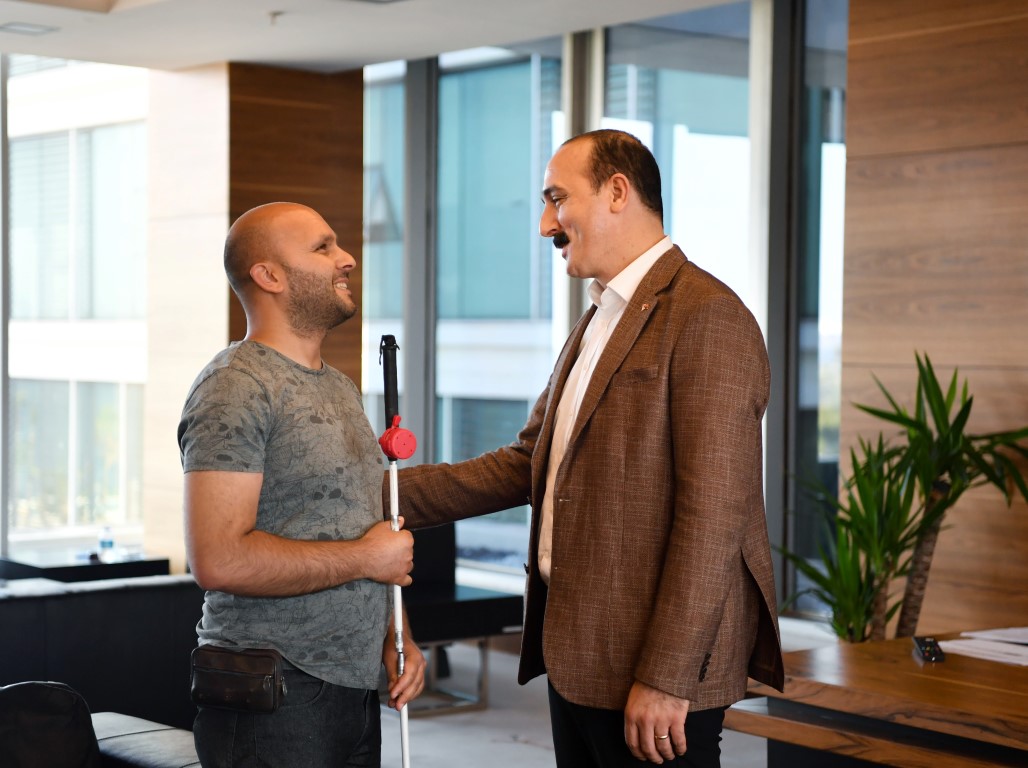 6 Şubat depreminin ardından Malatya’dan Antalya’ya gelen ve kente yerleşen görme engelli vatandaş Sinan Yolcu, Konyaaltı Belediye Başkanı Cem Kotan’ı ziyaret etti. Kotan’a engellilerin yaşadığı sıkıntılardan bahseden Yolcu, “Ben 32 yaşında Malatya doğumlu depremzede bir vatandaşım. Öncelikle hassasiyetiniz için size minnettarım Konyaaltı belediyesi bambaşka bir belediye gerçekten Antalya da bambaşka bir belediye. Konyaaltının bu konuda farkı var. Hassasiyetinizi hissedebiliyoruz. ” diye kaydetti.