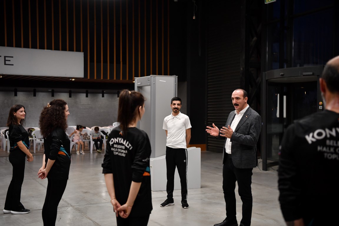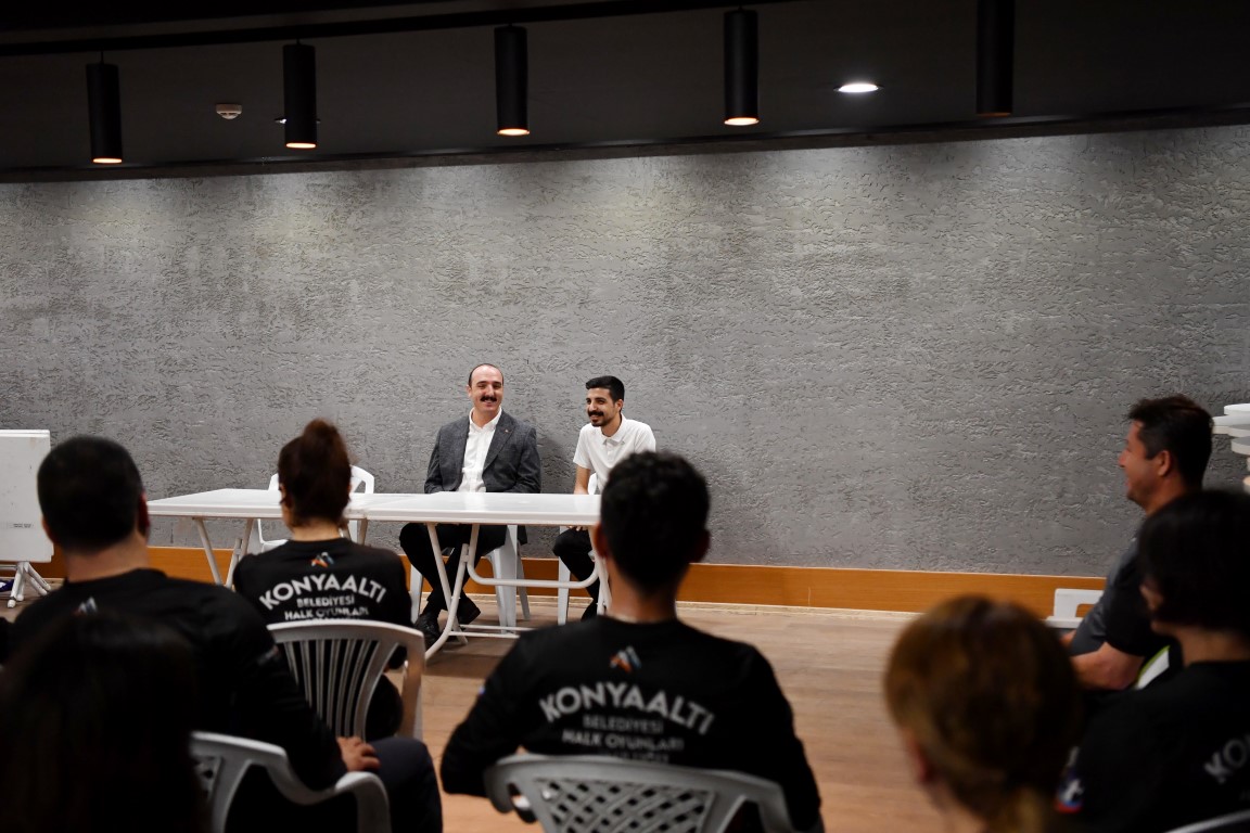 Konyaaltı Belediye Başkanı Cem Kotan, gönüllülerden oluşturulan Konyaaltı Belediyesi Halk Oyunları Topluluğu ekibini ziyaret etti. Başkan Kotan’ı ziyarette Konyaaltı Belediyesi Halk Oyunları Topluluğu Eğitmeni Mehmet Bağcı ve gönüllülerden oluşan ekip karşıladı.