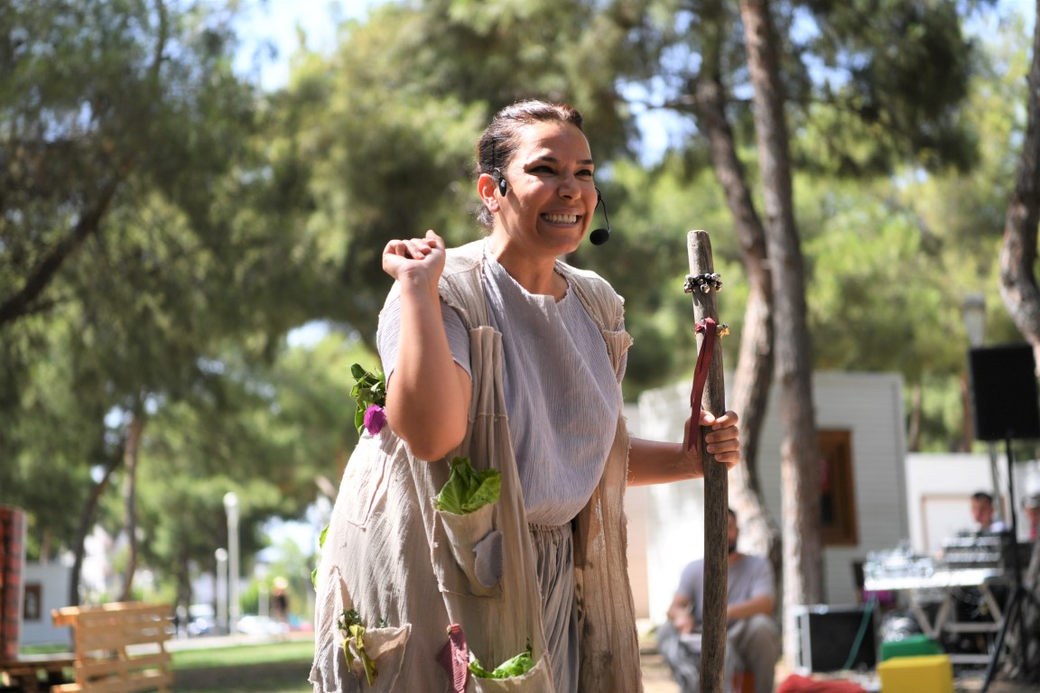 Hayatpark’ta kurulan masalarda çim tohumu diken çocuklar daha sonra Konyaaltı Belediyesi Tiyatro Akademisi oyuncularının sahnelediği “Bir Başka Rapunzel” adlı ekolojik tiyatro oyununu keyifle izledi. Rapunzel masalından esinlenerek oluşturulan oyunda, sağlıklı gıdanın insanlar için önemi eğlenceli bir dille anlatıldı. Oyun sonunda Konyaaltı Belediyesi Başkan Yardımcısı Müge Gezginci Ünsal, Tiyatro Akademisi Genel Sanat Yönetmeni Haluk Cömert, tiyatro eğitmenleri ve oyunculara çiçek takdim etti. 5 Haziran Dünya Çevre Günü’nde yaptıkları etkinliklerle çevreye olan farkındalığı artırmayı amaçladıklarını dile getiren Gezginci Ünsal, “Etkinliklerimize katılım bizleri sevindirdi. Son olarak Tiyatro Akademimiz tarafından sahnelenen Bir Başka Rapunzel adlı ekolojik tiyatroda da hem gıdanın önemi, hem de çok küçük yaşlardan itibaren bize dayatılan sadece erkeklerin kadınları kurtardığı masalların değişik bir versiyonuyla aslında gücün kendi içimizde olduğu çocuklarımıza anlatıldı. Buna ön ayak olan tiyatro ekibimizi de kutluyorum” dedi.