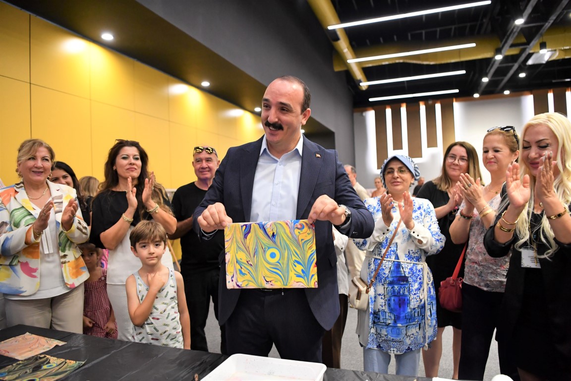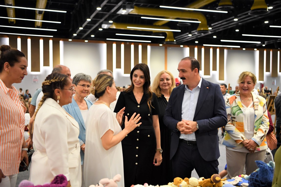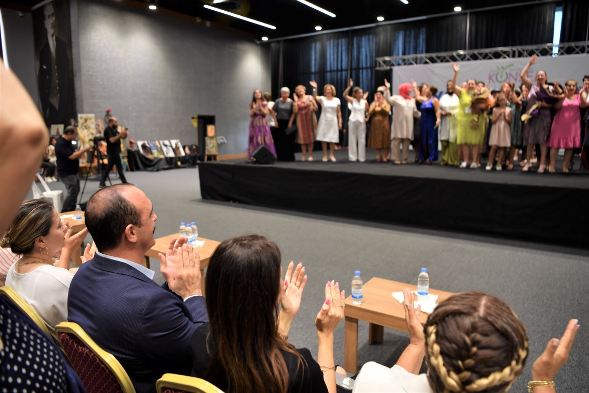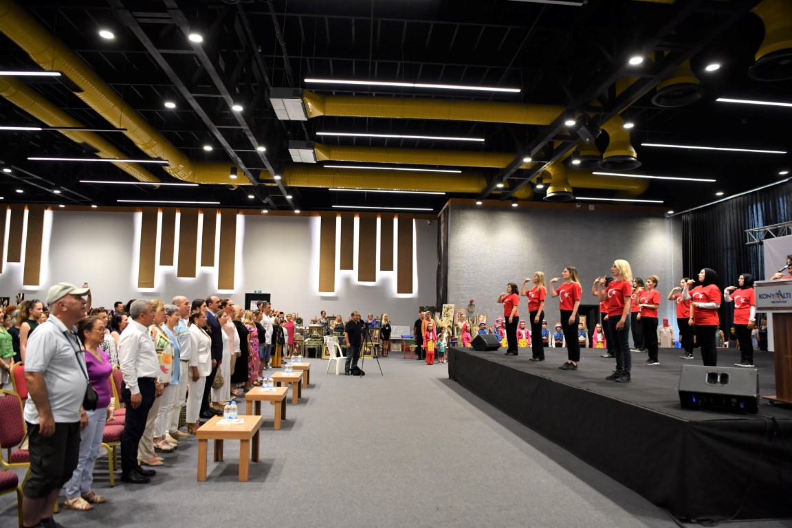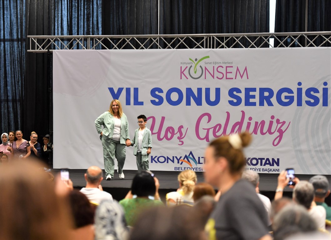 Kursiyerlerin bu yıl yaptığı el emeği eserlerden oluşan “KONSEM Yıl Sonu Sergisi” Nazım Hikmet Fuar ve Kongre Merkezi’nde ziyarete açıldı. Açılışını Konyaaltı Belediye Başkanı Cem Kotan’ın yaptığı sergide kursiyerlerin el emeği ürünleri sergileniyor. Açılışın ardından sergiyi gezerek kursiyerleri tebrik eden Başkan Cem Kotan, kursiyerlere birlikte ebru yaptı. Açılışta Türk bayraklı tişört giyen çok sayıda kadının İstiklal Marşı’nı işaret diliyle okunması ise dikkati çekti.