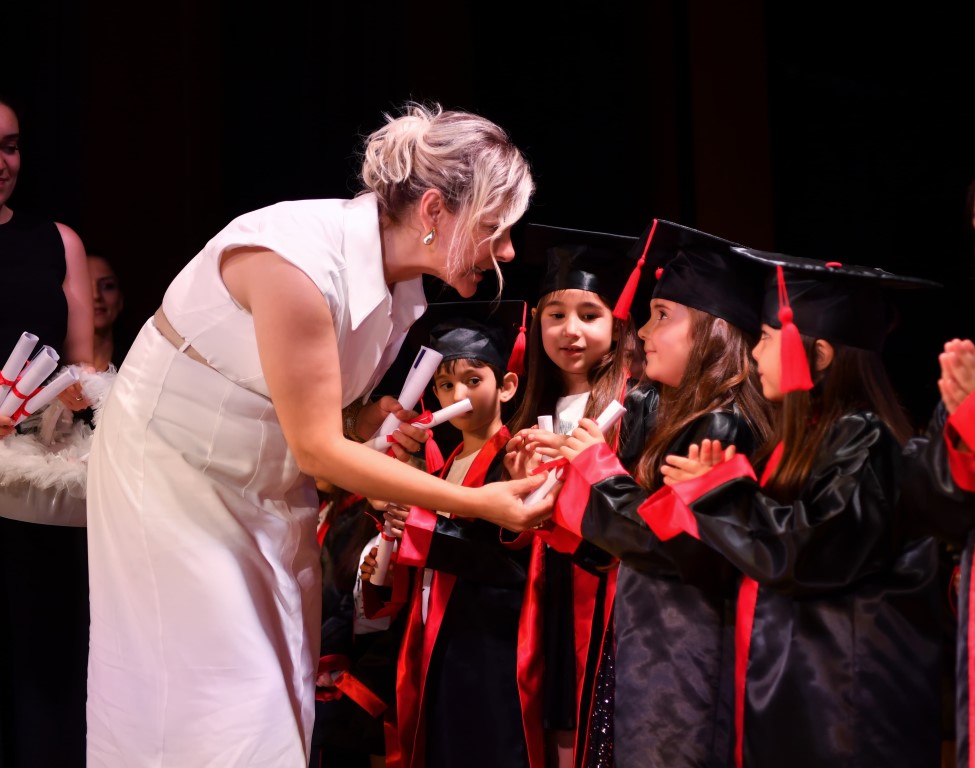 Birbirinden renkli gösteriler sunan minikler dans sonunda Türk Bayrağı açarak ulu önder Mustafa Kemal Atatürk’e ithafen; “Kimseyi Görmedim Ben Senden Daha Güzel” şarkısını söyledi. Öğrenciler salonu dolduran kalabalık tarafından dakikalarca ayakta alkışlandı. Tören sonunda minikler kep fırlatarak mezuniyet sevinci yaşadı.
