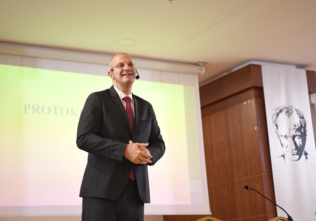 Konyaaltı Belediyesi, Akdeniz Belediyeler Birliği’nin (ABB) düzenlediği, “Protokol Kuralları” konulu eğitime ev sahipliği yaptı. Belediyelerin kurumsal kapasitesini güçlendirmek, yönetim kalitesinin yükseltilmesi ve iş birliği ağlarının geliştirilmesine yönelik düzenlenen eğitim eğitmen İhsan Ataöv verdi. Eğitime ABB’ye üye belediyelerin daire başkanları, birim müdürleri ve özel kalem müdürleri katılım sağladı. Eğitim açılış konuşmasını yapan Konyaaltı Belediye Başkanı Cem Kotan, protokolun önemine vurgu yaptı. Başkan Kotan “Protokol eğitimine ev sahipliği yaptığımız için mutluyum. Gün boyunca daire başkanlarımız, birim müdürlerimiz ve özel kalem müdürlerimiz protokol eğitimi alacaklar. Bu tür eğitimlerle, belediyemizin profesyonel yönetim anlayışını pekiştireceğiz” diye konuştu.