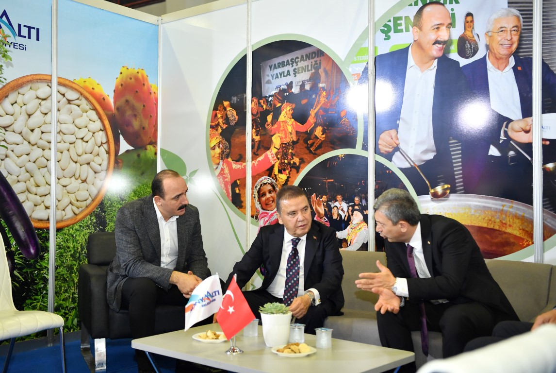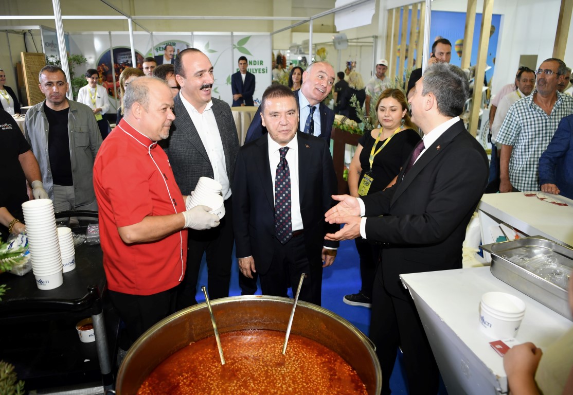Antalya Ticaret Borsası (ATB) ev sahipliğinde bu yıl 13’ncüsü düzenlenen YÖREX Fuarı 9-13 ekim tarihleri arasında ANFAŞ Fuar Merkezi’nde ziyaretçilerine kapılarını açtı. Konyaaltı Belediyesi de fuar merkezine kurduğu standında bölgeye has yöresel lezzetleri sergiledi. Stantta Çandır fasulyesi, doyran patlıcanı, Çakırlar’da yetişen mandalina, limon ve nar yer aldı. Başkan Kotan, standa gelen Antalya Valisi Hulisi Şahin, Antalya Büyükşehir Belediye Başkanı Muhittin Böcek ve Konyaaltı Kaymakamı Rahmi Köse’ye fasulye ikramında bulundu.