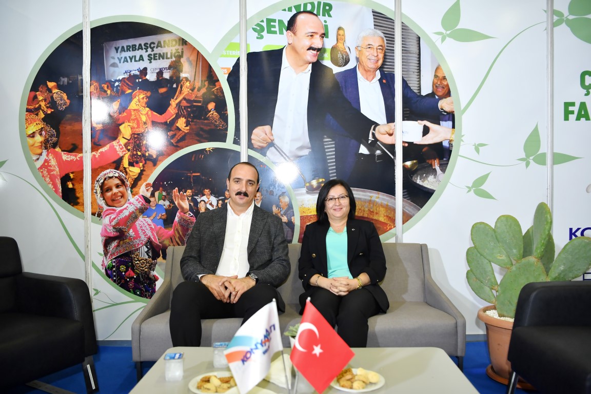 Kentin zengin kültürel ve gastronomik mirasını tanıtmak amacıyla fuara katılarak, yöresel ürünlerini sergileyen Konyaaltı Belediyesi, özellikle çandır fasulyesi ile katılımcıların dikkatini çekti. Konyaaltı Belediye Başkanı Cem Kotan, standa gelen ziyaretçilerle sohbet etti ve Çandır fasulyesi yemeği ikram etti. 13 yıldır bu etkinliği gerçekleştiren ATB Başkanı Ali Çandır’a teşekkürlerini ileten Başkan Kotan, YÖREX’in, yöresel ürünlerin tanıtımı açısından Antalya’nın en önemli fuarlarından biri olduğunu kaydetti. Başkan Kotan, “Konyaaltımızın eşsiz lezzetlerini tanıtmak için buradayız. Kısa bir süre önce Yarbaş Çandır’da da yöresel ürünümüz olan fasulye ikramında bulunmuştuk. Bizler yöresel ürünlerimize çok önem veriyoruz. Bütün vatandaşlarımızı standımıza davet ediyoruz” dedi.