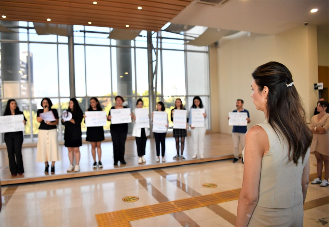Tüm Bel-Sen Antalya Şubesi tarafından düzenlenen “Ses Ver” başlıklı basın açıklamasına, Konyaaltı Belediyesi tam destek verdi. Kadına yönelik şiddete ve kadın cinayetlerine dikkat çekmek amacıyla düzenlenen etkinliğe, Konyaaltı Belediye Başkan Yardımcıları, birim müdürleri ve belediye personeli katıldı.