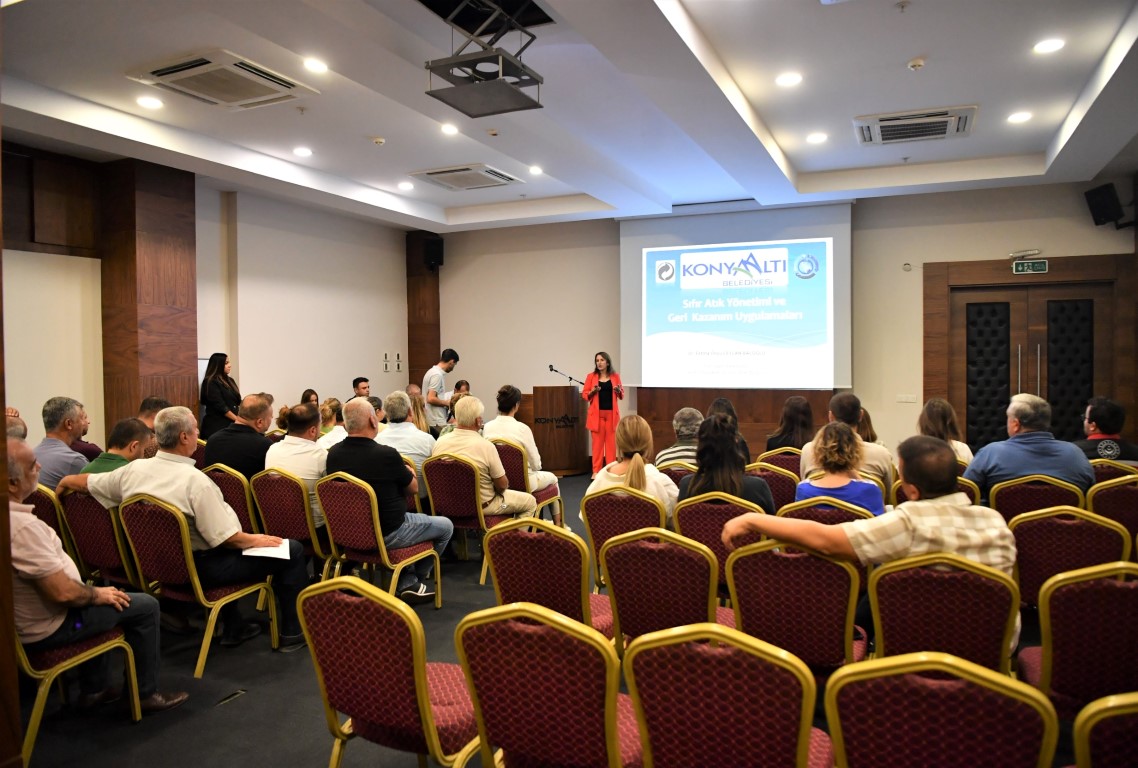 Konyaaltı Belediyesi sıfır atık hedefleri doğrultusundaki eğitimlerine devam ediyor. “Sıfır Atık Yönetimi ve Geri Kazanım Uygulamaları” konulu toplantı gerçekleştirildi. Sıfır atık yönetimi, geri dönüşüm süreçleri ve atıkların doğru şekilde ayrıştırılması gibi konular üzerine kapsamlı bilgiler verildi. Atıkların çevreye zarar vermeden bertaraf edilmesi ve geri kazanım süreçleri hakkında güncel uygulamalar anlatıldı. Belediye yetkilileri, atık miktarlarının azaltımı konusundaki çalışmaları ve önümüzdeki süreçte hayata geçirilecek projeler hakkında da muhtarları bilgilendirdi.