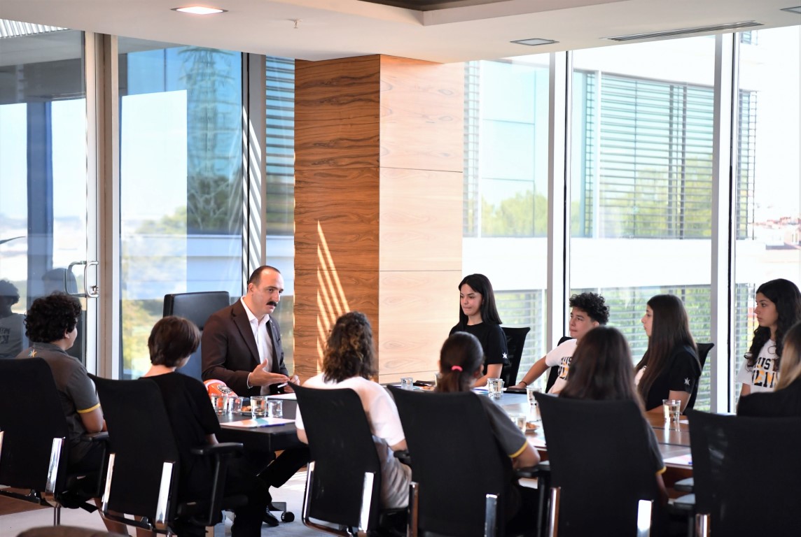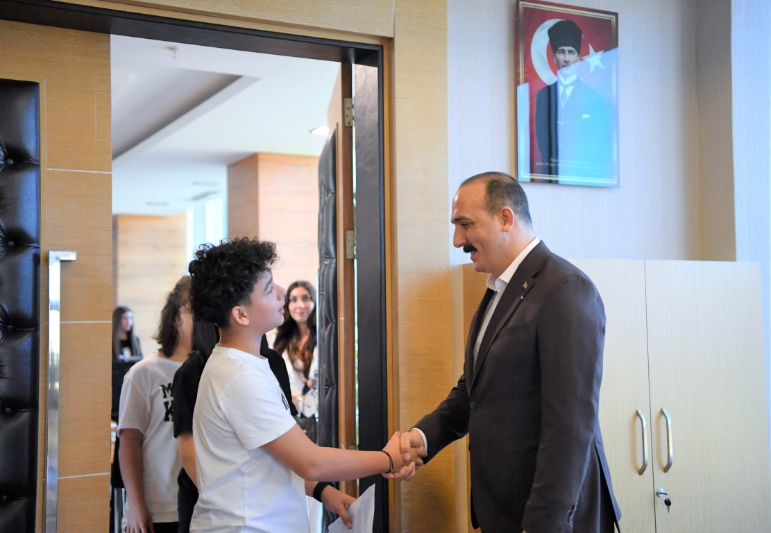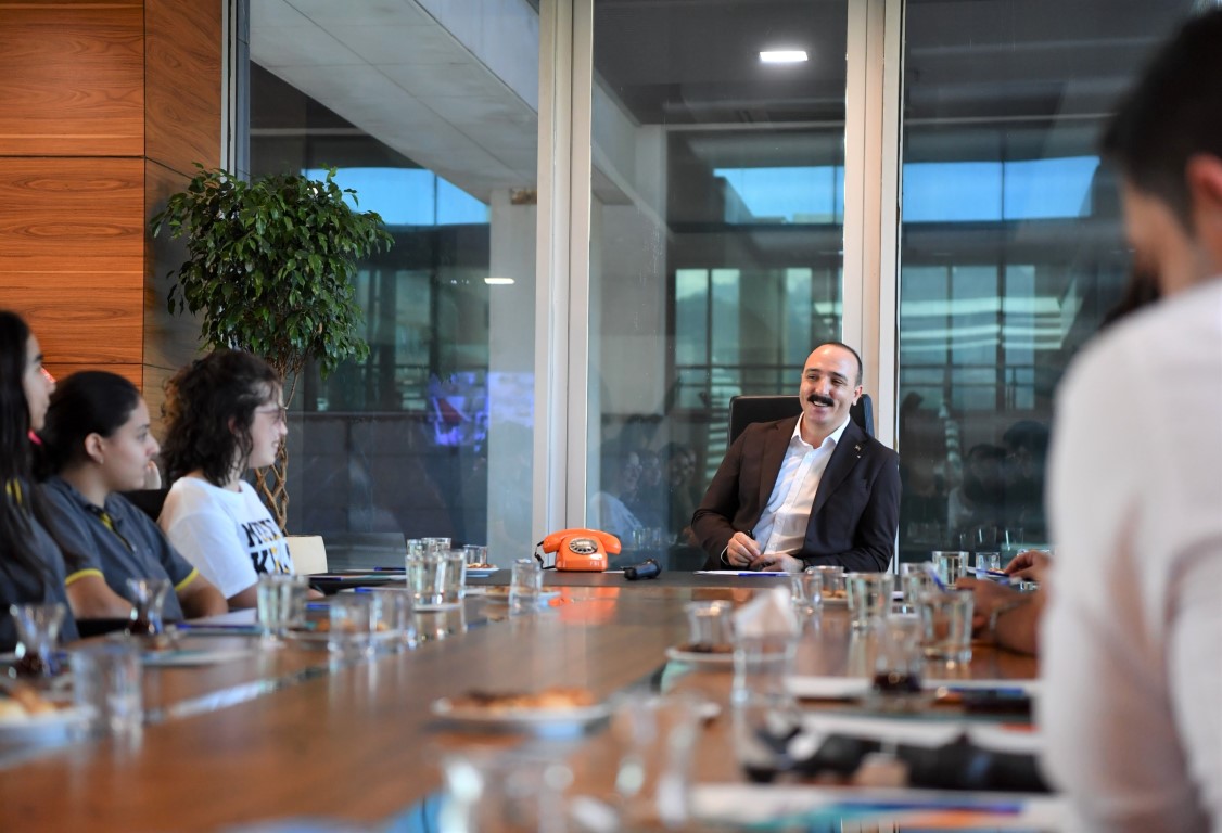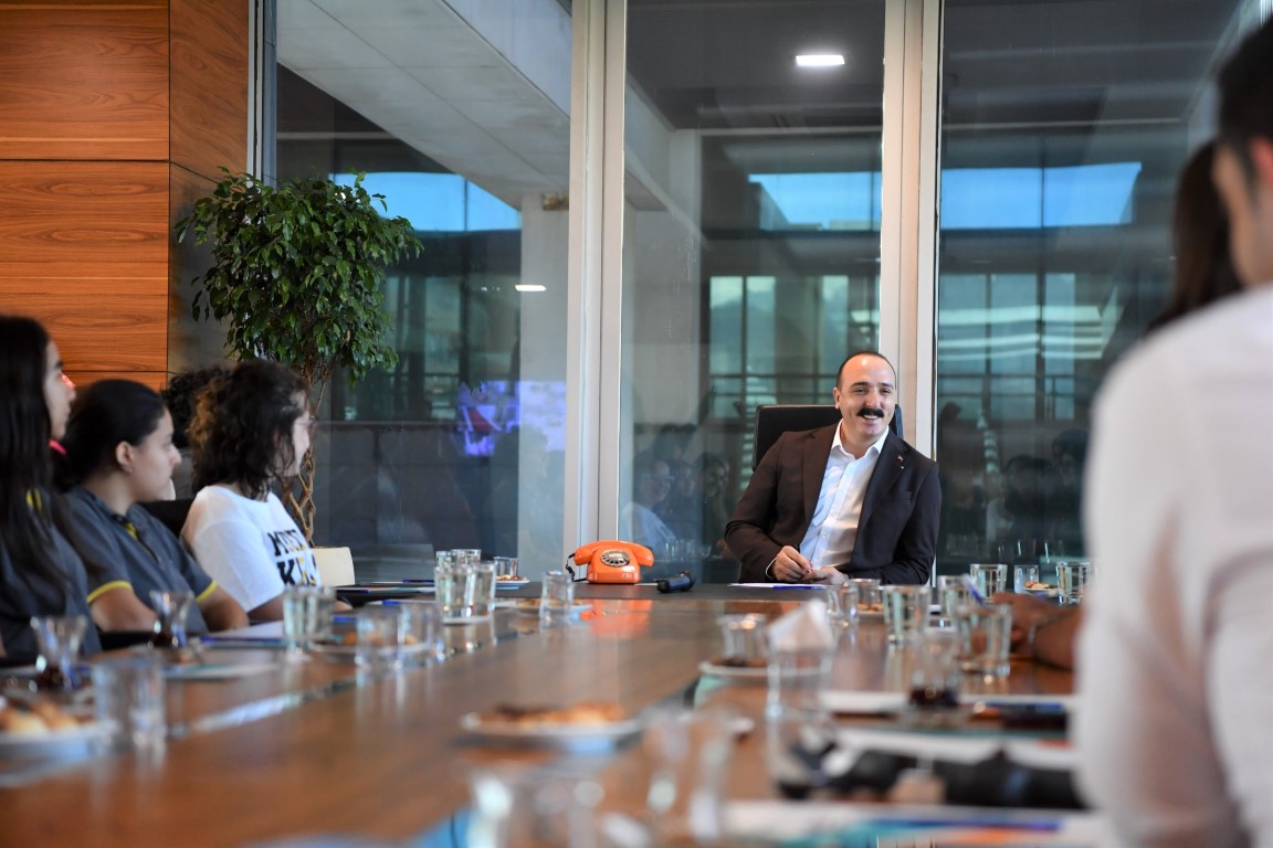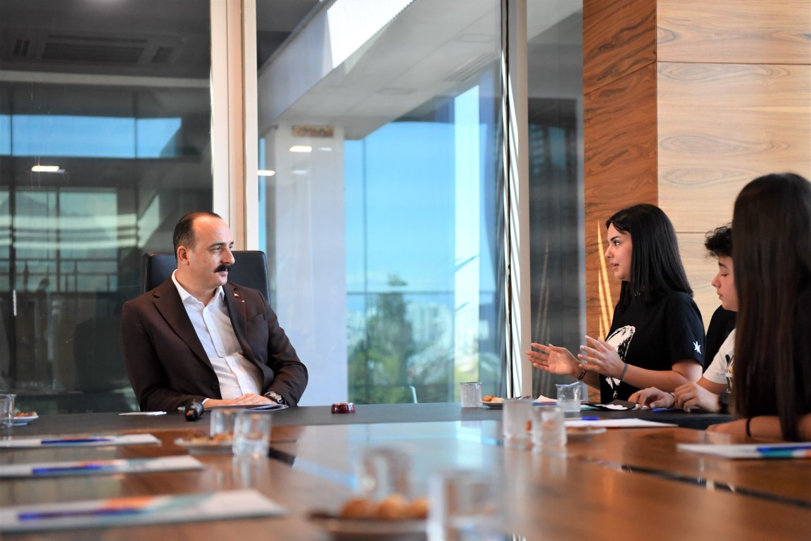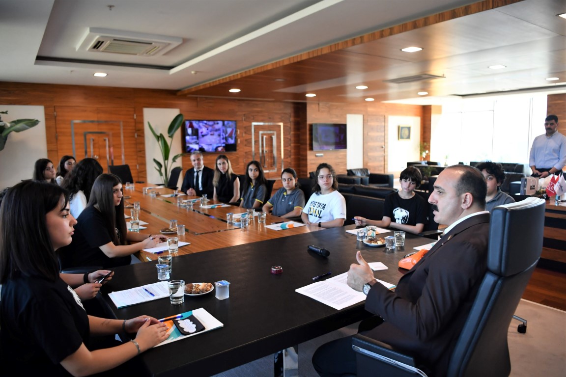 Konyaaltı Belediye Başkanı Cem Kotan, makamında ağırladığı Mustafa Kemal Okulları öğrencilerinin sorularını yanıtladı. Yerel yönetim olarak gençlerin gelişimine katkı sağlamanın öncelikli hedeflerinden biri olduğunu belirten Başkan Kotan, öğrencilerle sık sık bir araya gelmekten duyduğu memnuniyeti ifade etti. Öğrencilerin, ‘Biyomikrofon projeleri’ kapsamında sorduğu soruları yanıtlayan Kotan, çevre, sürdürülebilirlik ve biyoteknoloji üzerine değerlendirmelerde bulundu. Başkan Kotan, Konyaaltı Belediyesi olarak doğa dostu projelere her zaman destek vereceklerini aktardı.