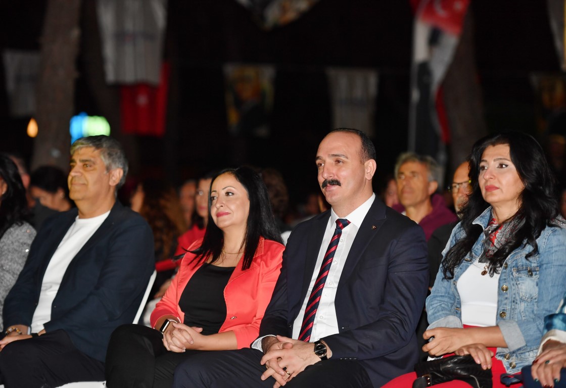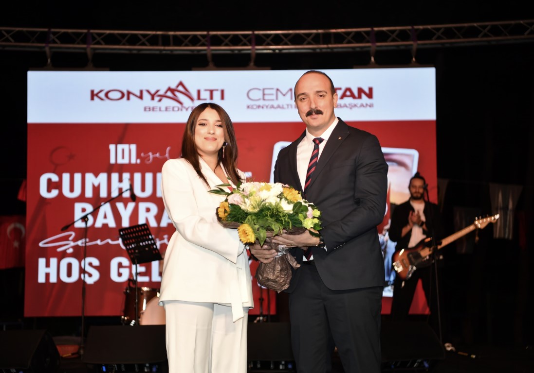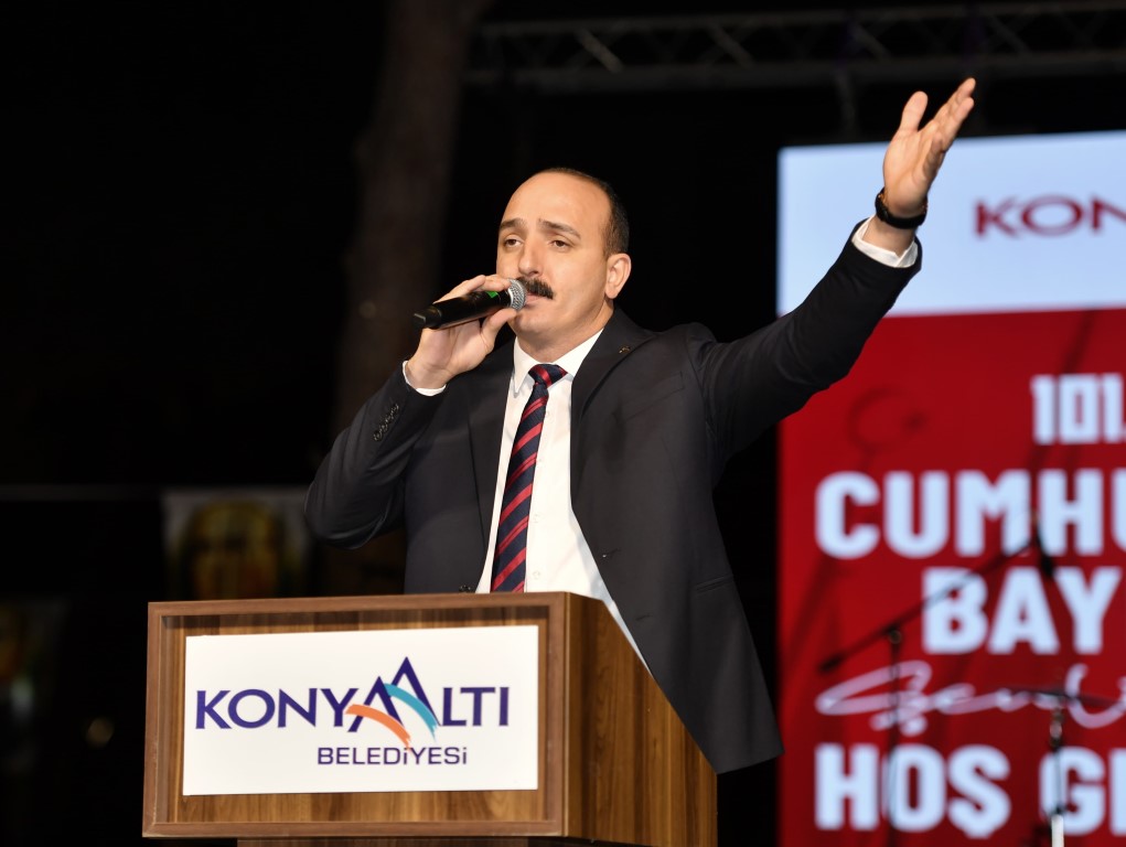 Etkinlikte konuşan Konyaaltı Belediye Başkanı Cem Kotan, “Öncelikle konuşmama başlamadan önce geçtiğimiz gün gerçekleşen terör saldırısını kınıyorum. Bugün burada Cumhuriyetimizin yıl dönümü için buradayız. 101 yıl önce büyük bir mücadeleyle bağımsızlığımızı ilan ettik. Ulu önder Mustafa Kemal Atatürk başta olmak üzere bu vatan için canını feda eden aziz şehitlerimizi rahmet ve minnetle anıyorum. Cumhuriyet sevdalıları, Atatürk’ün değerli evlatları, bugün burada cumhuriyetimizi yaşatmak için toplandık. Bizler birlik içinde kenetlenen, kurtuluş mücadelesi veren cumhuriyeti halkına emanet eden Mustafa Kemal Kemal’in evlatlarıyız. Bizler birlikte çok güzeliz. Cumhuriyete çok şey borçluyuz. O yüzden bugün her şeye rağmen, her şeye inat cumhuriyetimizi coşkuyla kutlayacağız” diye konuştu. Kutlamalar, dans gösterileri, dj performansı, Konyaaltı Belediyesi Halk Oyunları Topluluğu gösterisi ile devam etti ve Deniz Dönmez konseri ile sona erdi.