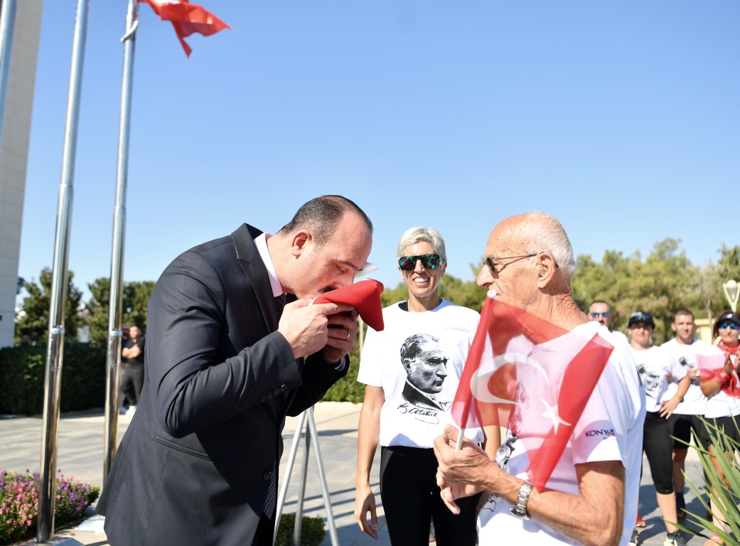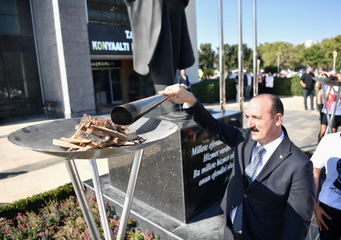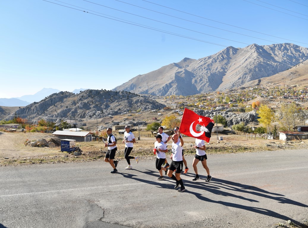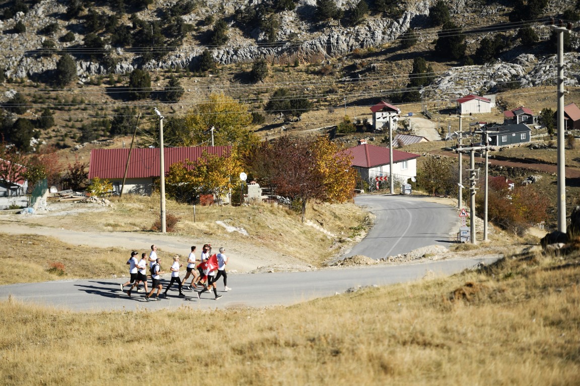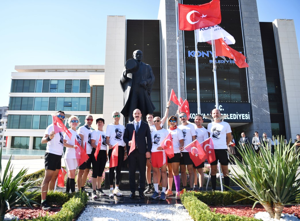Konyaaltı Belediyesi, HayatPark’ta düzenlediği etkinliklerin yanı sıra, Feslikan Yaylası’ndan başlayarak belediye hizmet binası önünde tamamlanan Cumhuriyet Koşusu ile çok anlamlı bir organizasyona imza attı. Adım Adım Antalya grubu işbirliği ile düzenlenen etkinlikte 14 sporcu 41 kilometrelik parkurda Cumhuriyet için koştu. Feslikan Yaylası Güreş Sahası’nda aldıkları meşale ve Türk Bayrağını 14 mahalleyi geçerek Konyaaltı Belediyesi önüne getiren sporcular, Konyaaltı Belediye Başkanı Cem Kotan’a teslim etti. Bayrağı teslim alıp, 3 kez öperek alnına götüren Başkan Kotan, belediye önündeki Atatürk büstünün yanına kurulan sembolik meşaleyi yaktı.